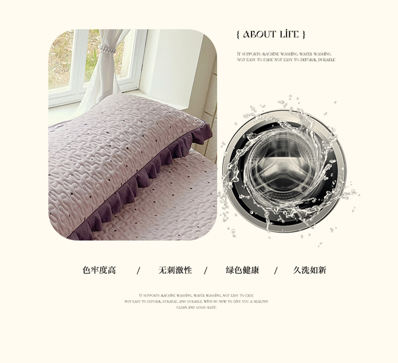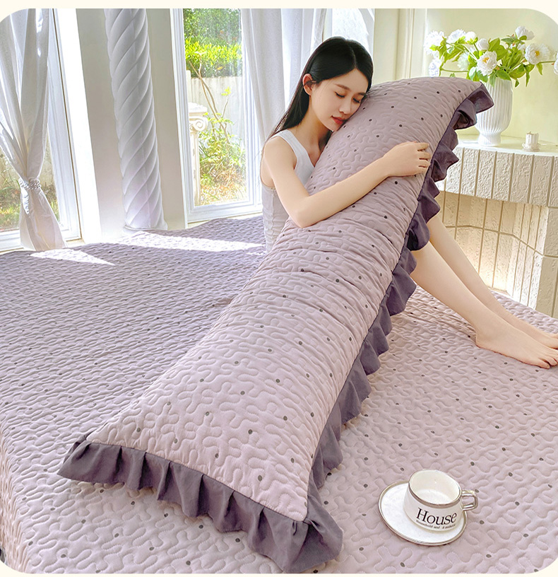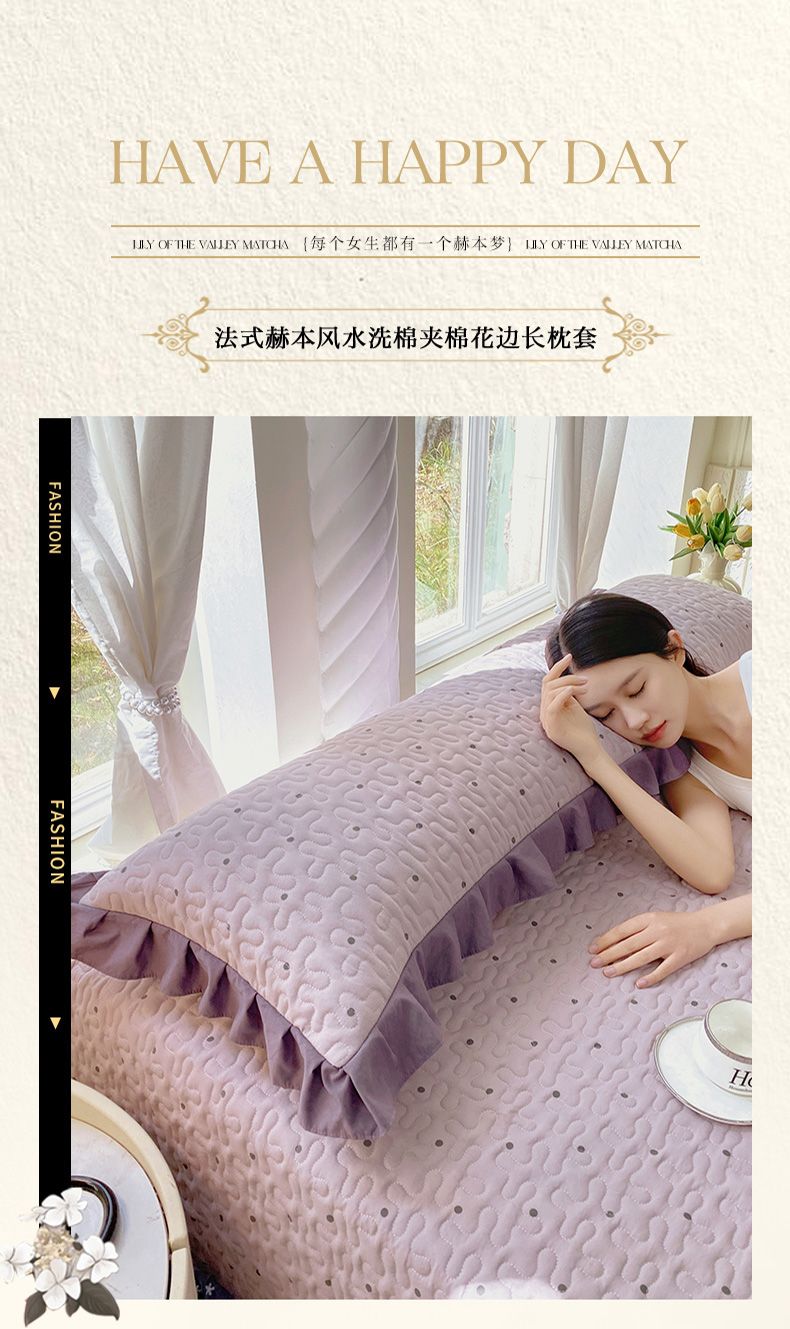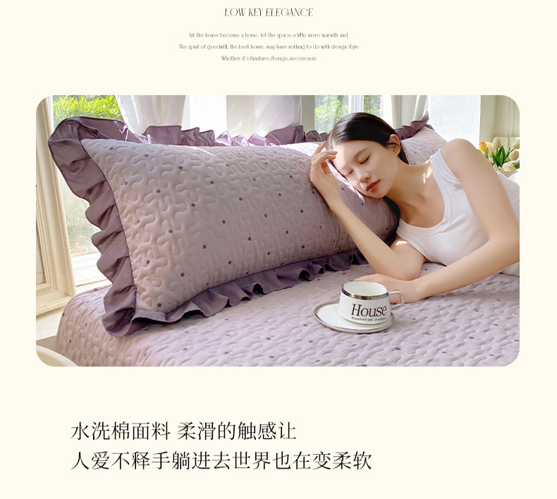 商品名称:雨彤家纺2025新款赫本风水洗棉花边夹棉枕套双人款 芋艿波波-紫