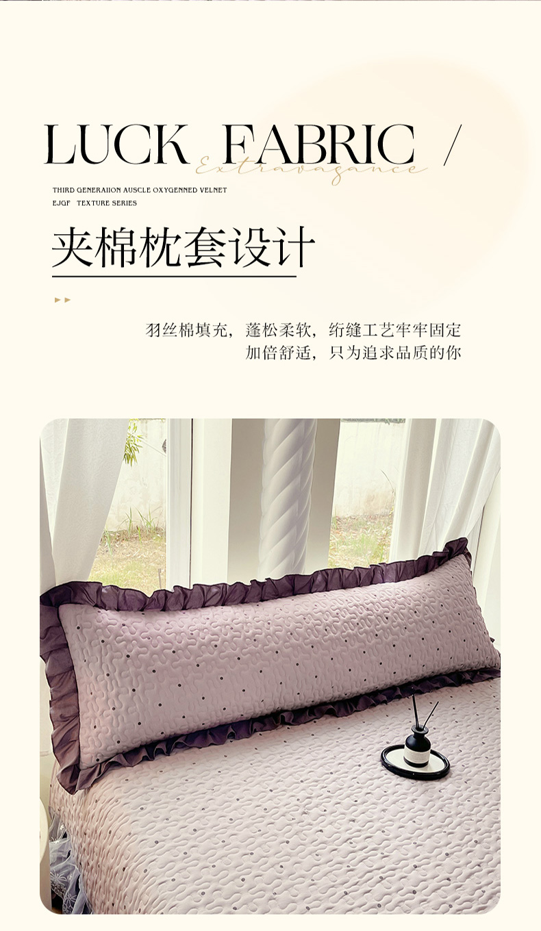 (总)雨彤家纺 2025新款牛奶绒花边夹棉长枕套,幸运草-淡粉,幸运草-鹅黄,幸运草-高级灰,幸运草-经典咖,幸运草-桔色,幸运草-奶白,幸运草-嫩绿,幸运草-雾兰,幸运草-香芋紫,幸运草-银灰