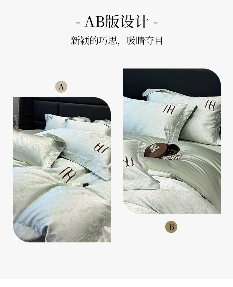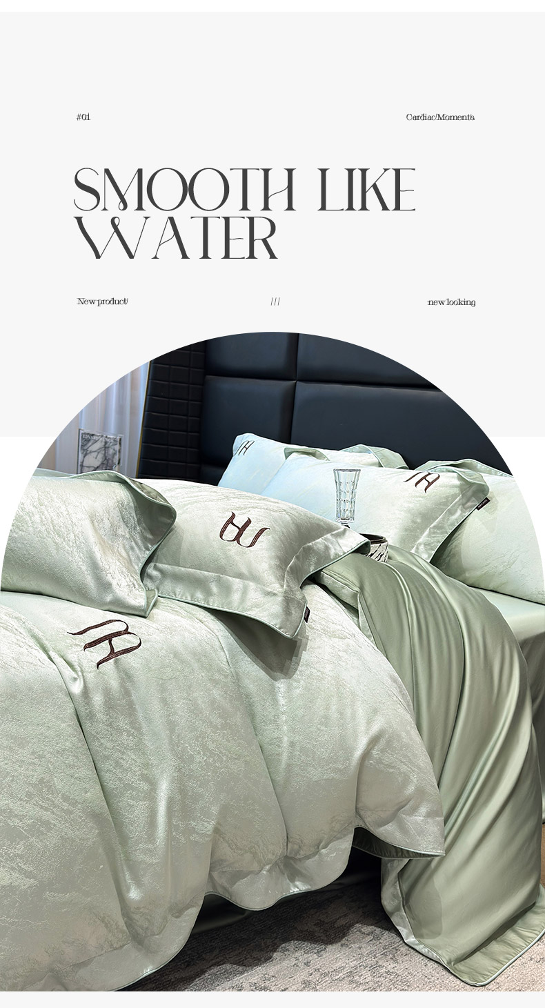 商品名称:2025春夏新款A类天丝棉提花四件套-丝蕴 丝蕴-浅松绿