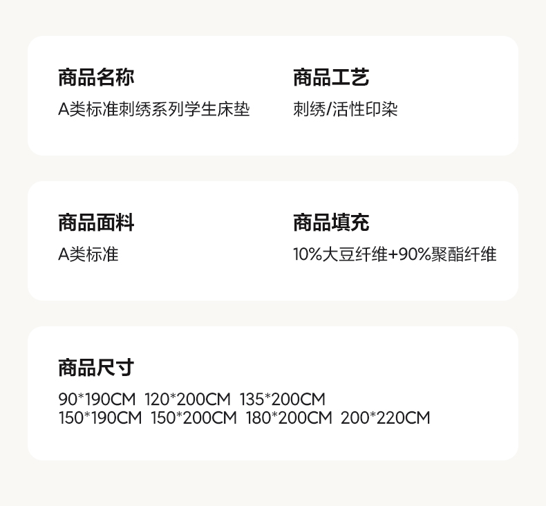 当前位置: 91家纺网 > 商品网购 > 床垫/床褥 > 普通床垫 > 芬晴家纺 2025新款A类亲肤刺绣系列成人床垫-派格 派格-米白