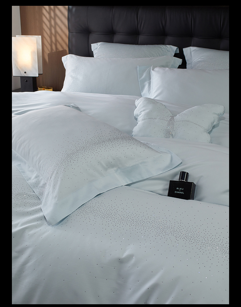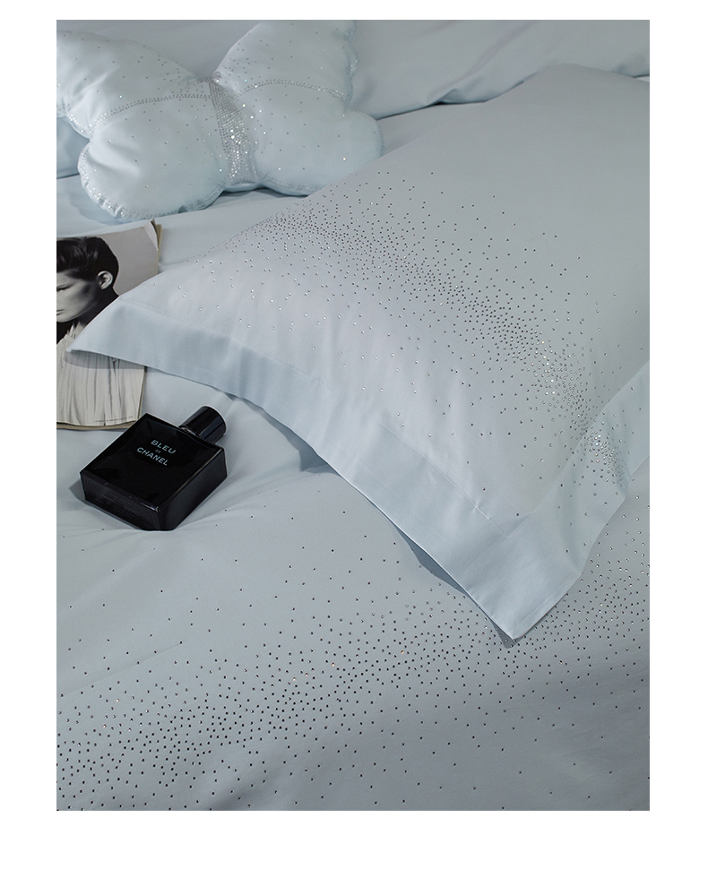 商品名称:鼎飞2025新款长绒棉烫钻四件套 皇家梦境-水雾蓝