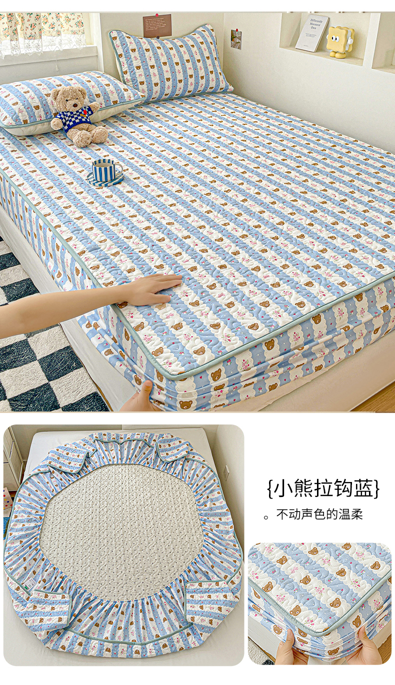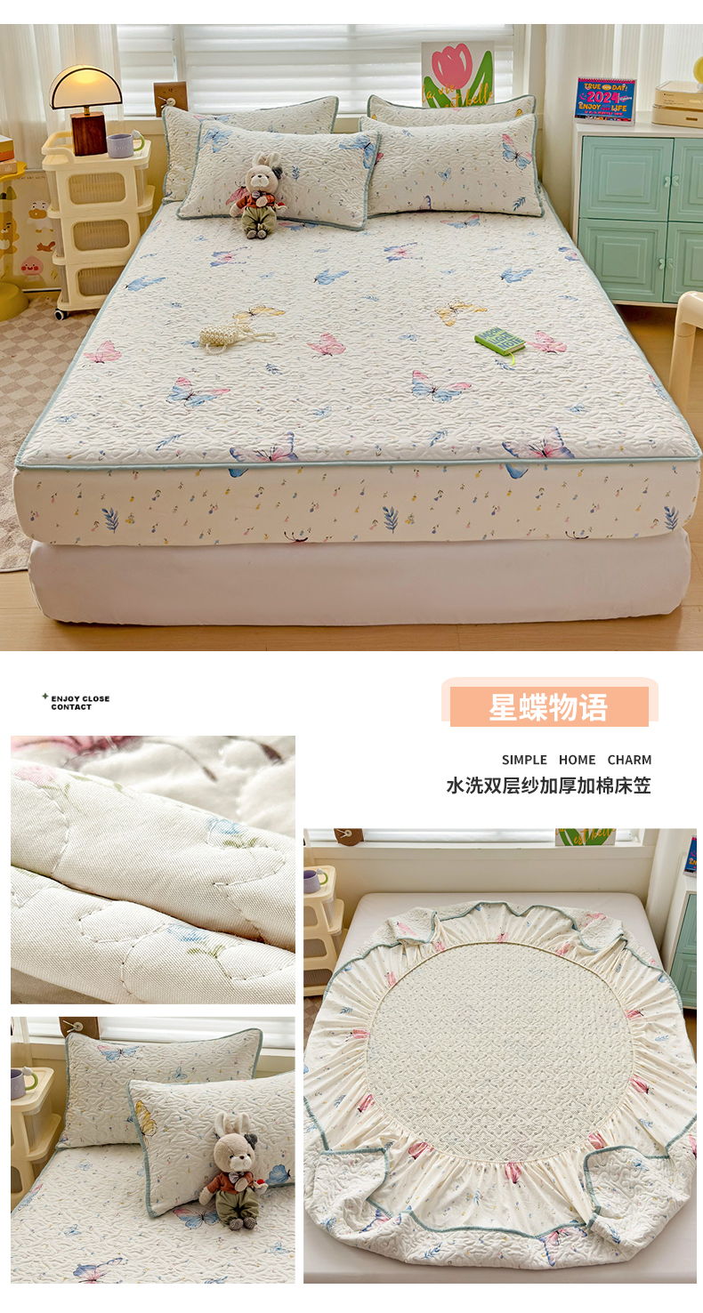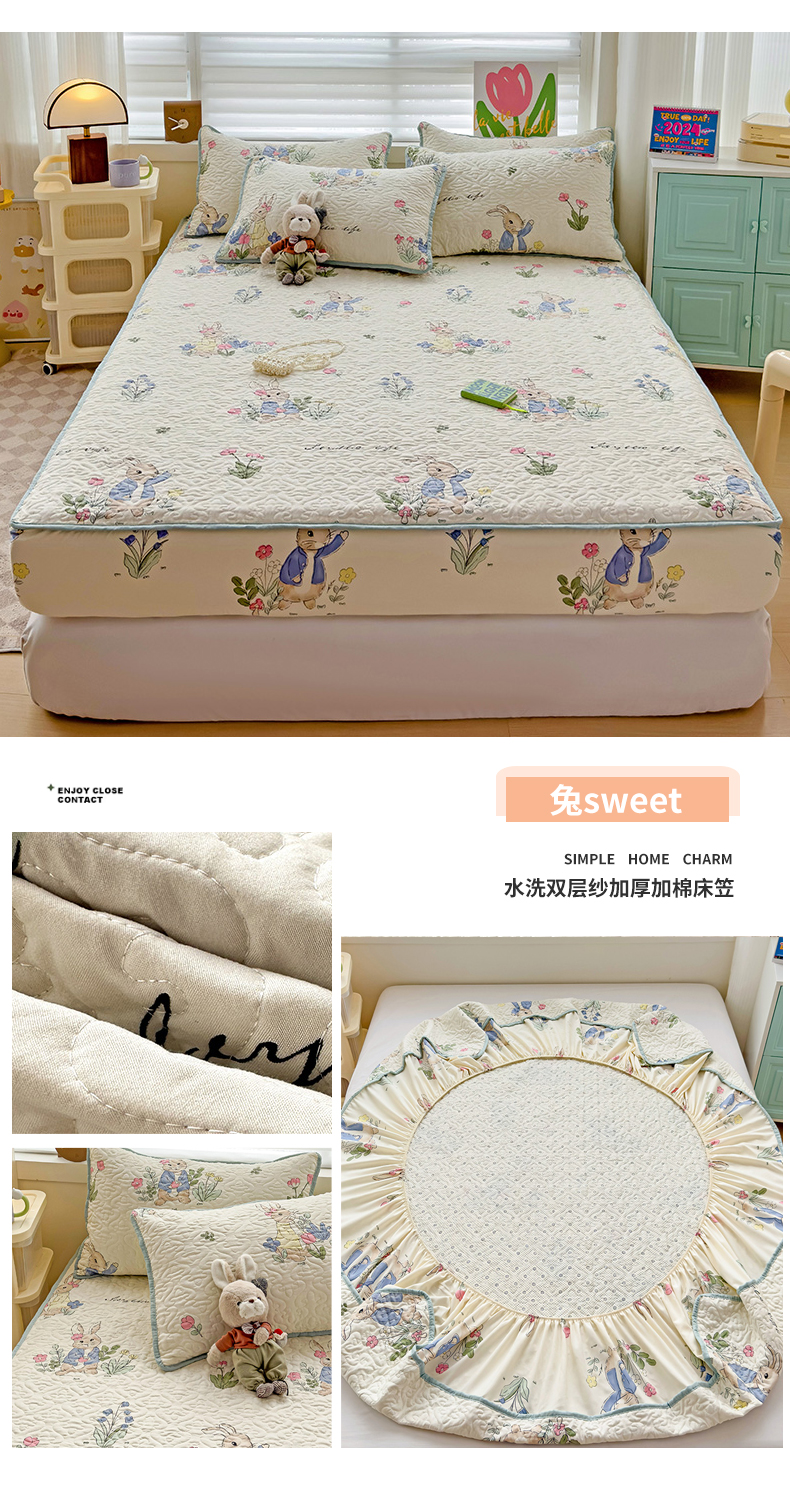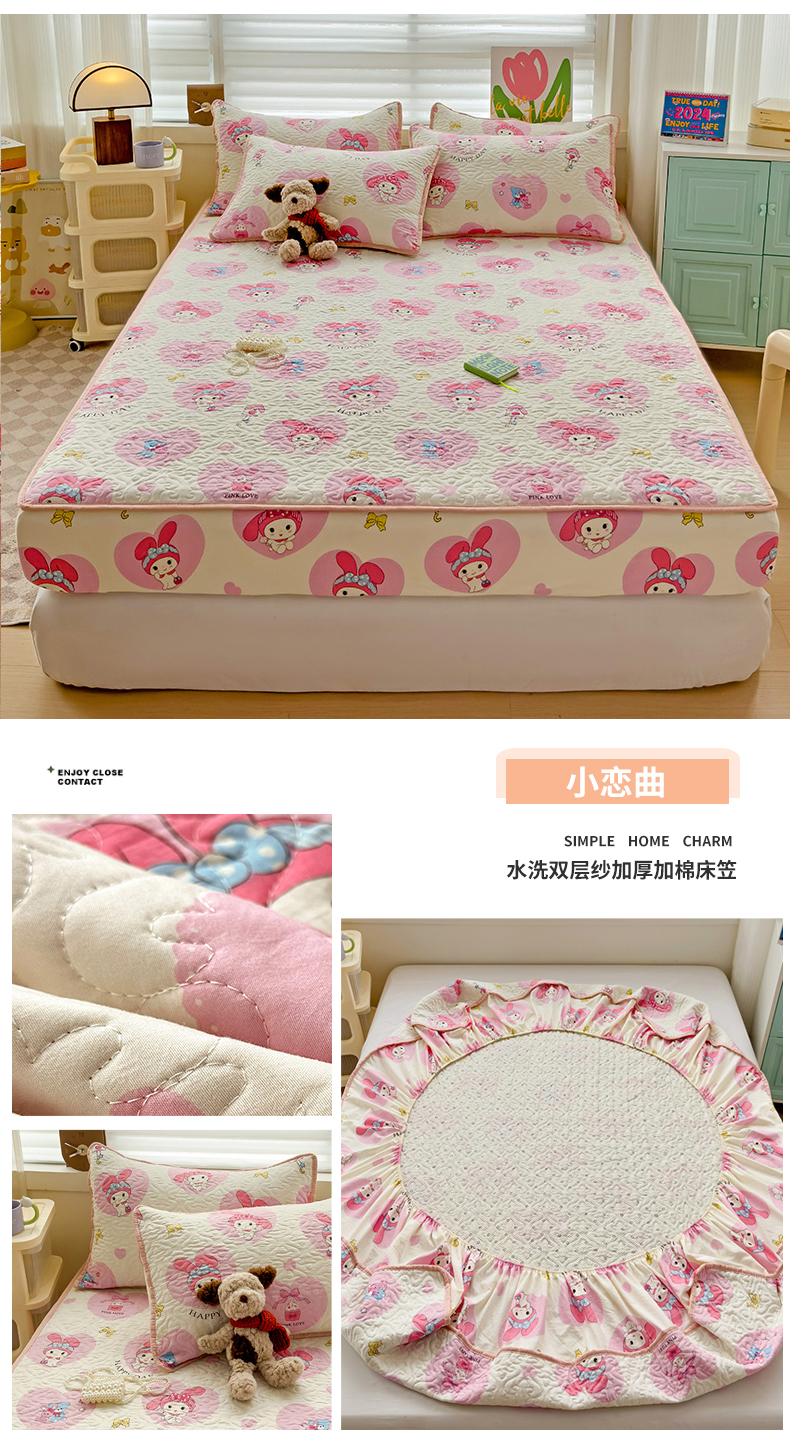 (总)纽缦家纺 2025新款云朵提花双层纱夹棉绗缝床笠,爱如星辰,暗恋,波点世界,大吉大厘,海像森林,恋如青柠香,落日暮年绿,猫猫晚宴,猫咪恋人,玫瑰哒,蜜糖之恋,葡萄七分甜,奇妙小熊米,倾心紫,森林野园,他和她的兔,兔子的欢喜,相思蓝,小豹纹,小猫时光蓝,小鸥鸥,有草莓的地方
