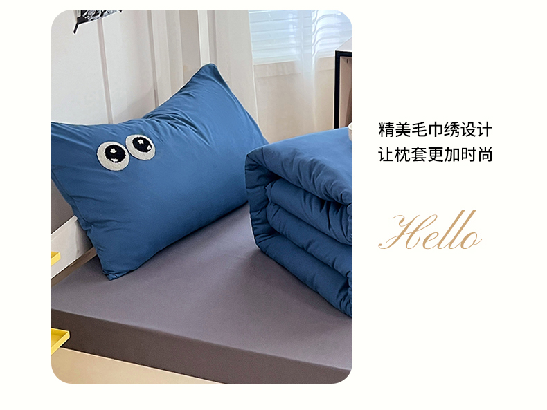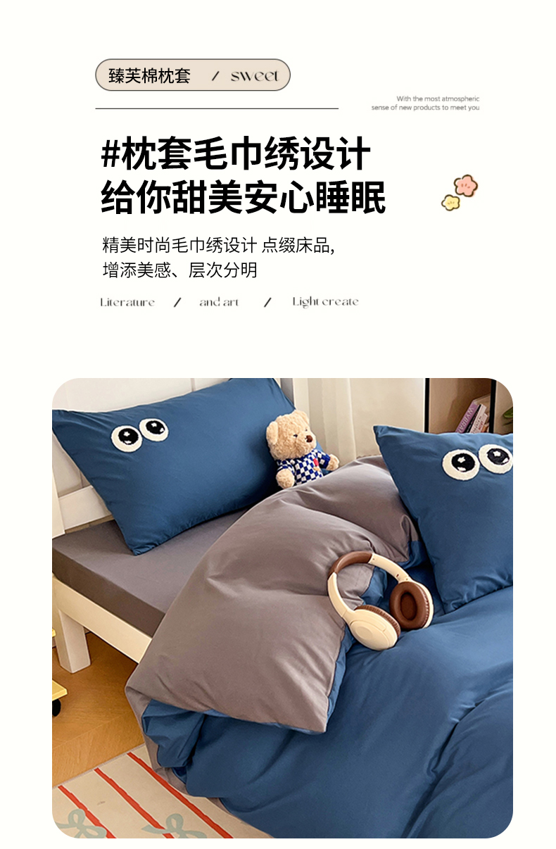 商品名称:(总)2025新款大眼睛毛巾绣纯色双拼水洗棉单品单枕套家用学生宿舍单件