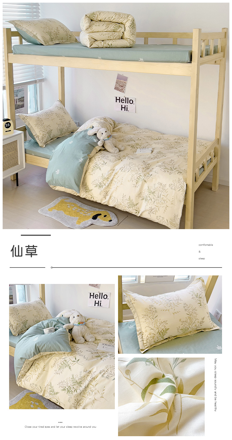 当前位置: 91家纺网 > 商品网购 > 床品套件 > 三件套 > 依庭 2025新款全棉印花学生三件套宿舍三件套全棉三件套纯棉三件套 仙草