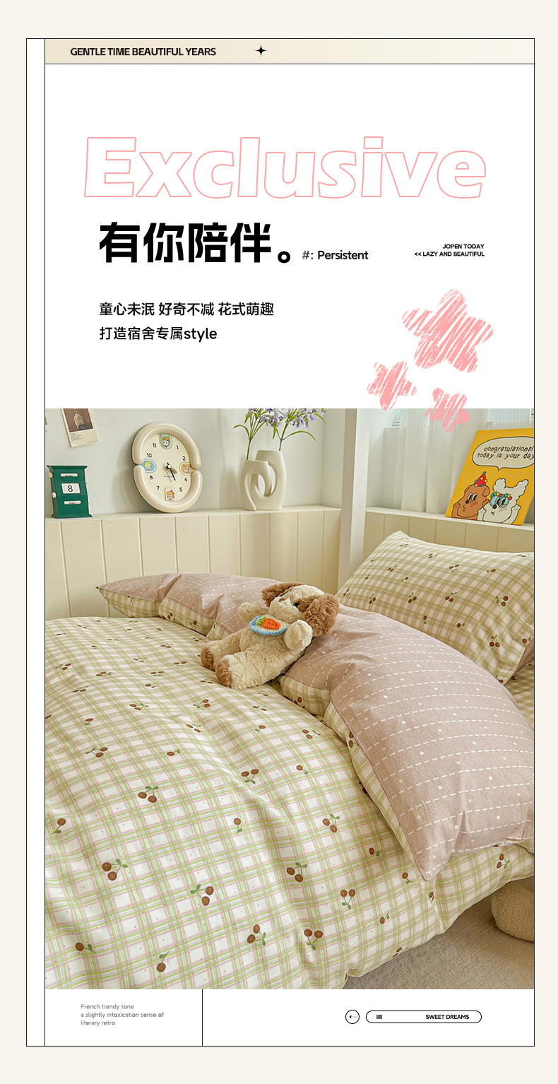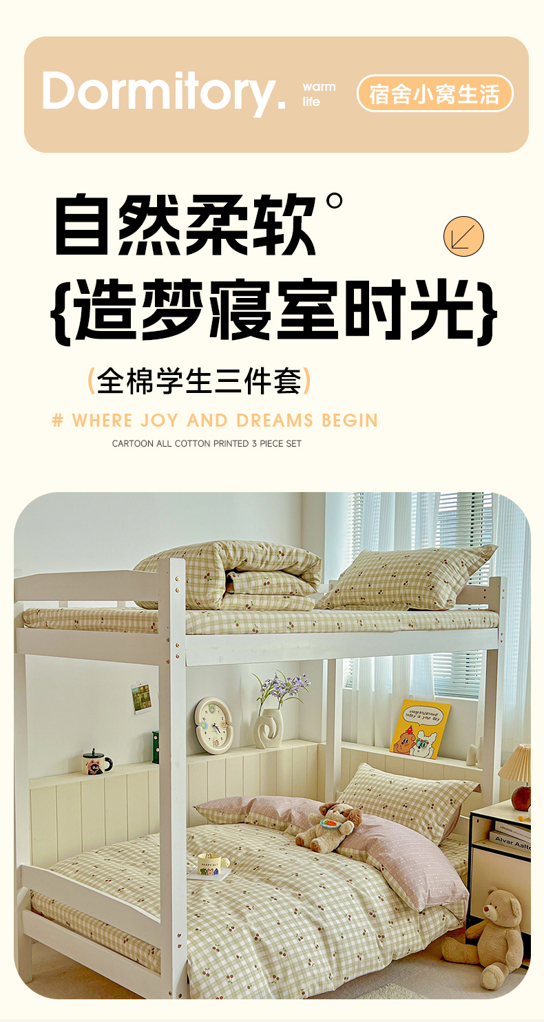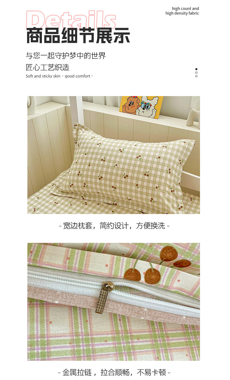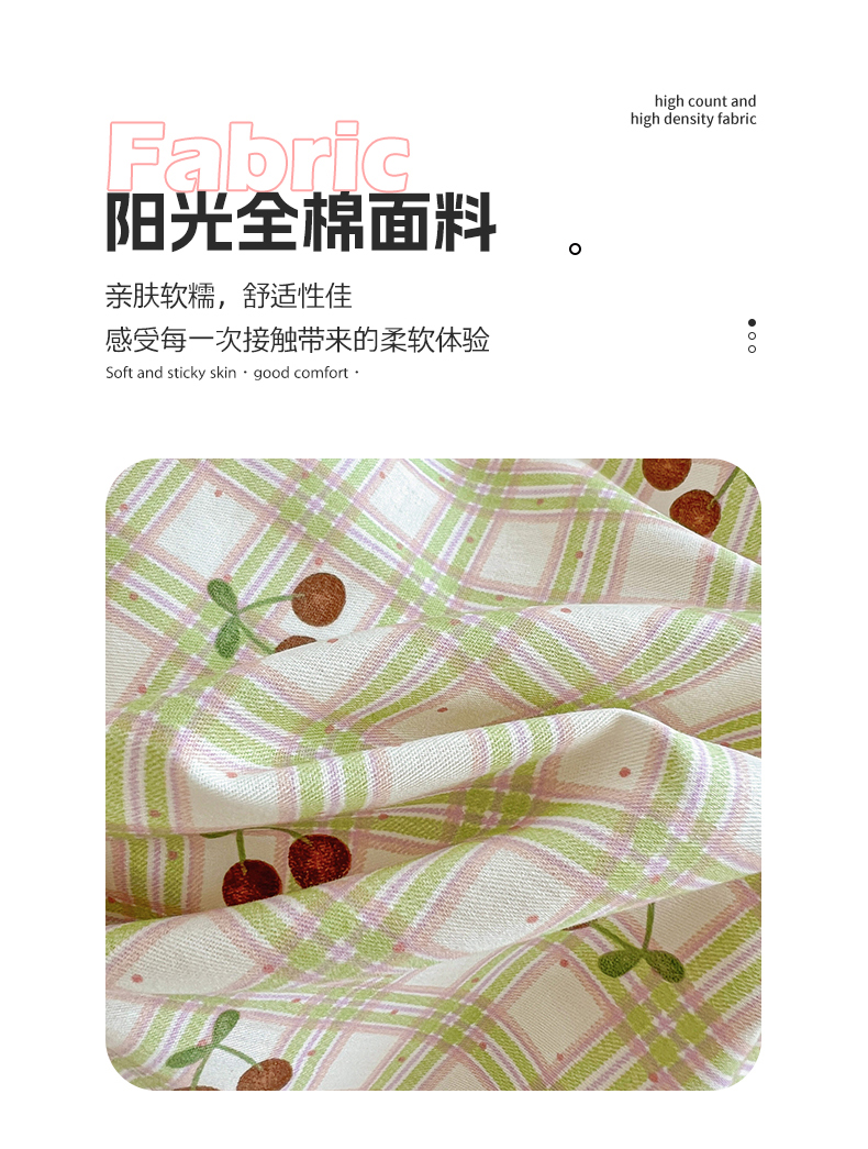 商品名称:春雨家居 2025新款学生季全棉三件套(预留缩水) 23.酸甜樱桃