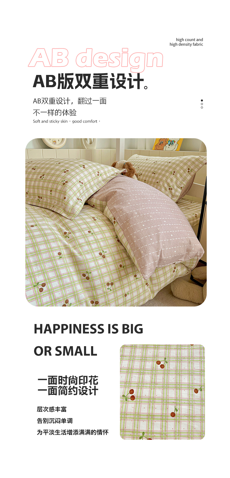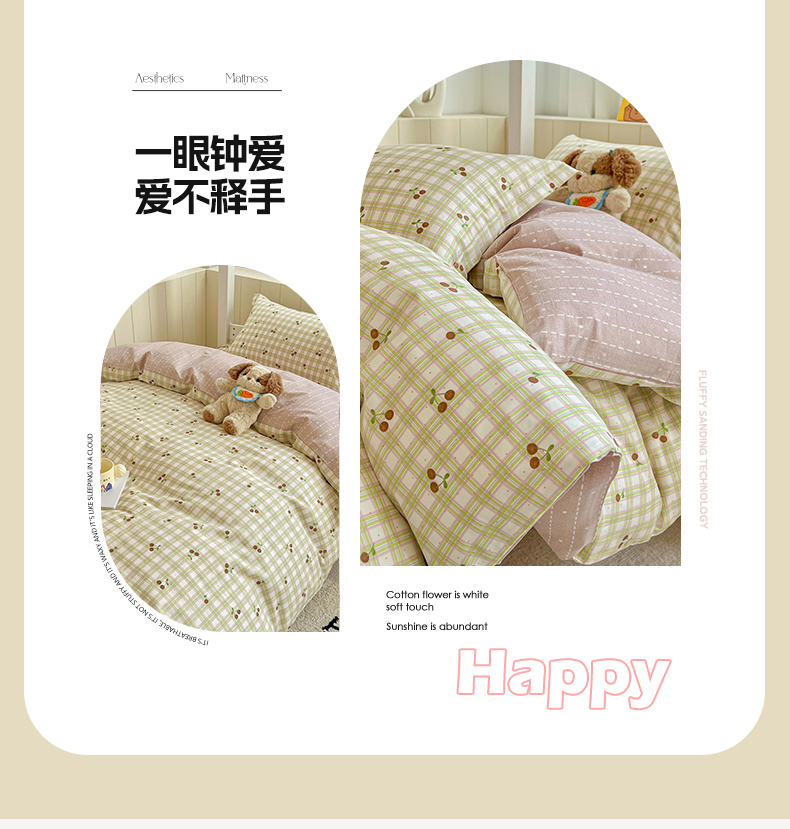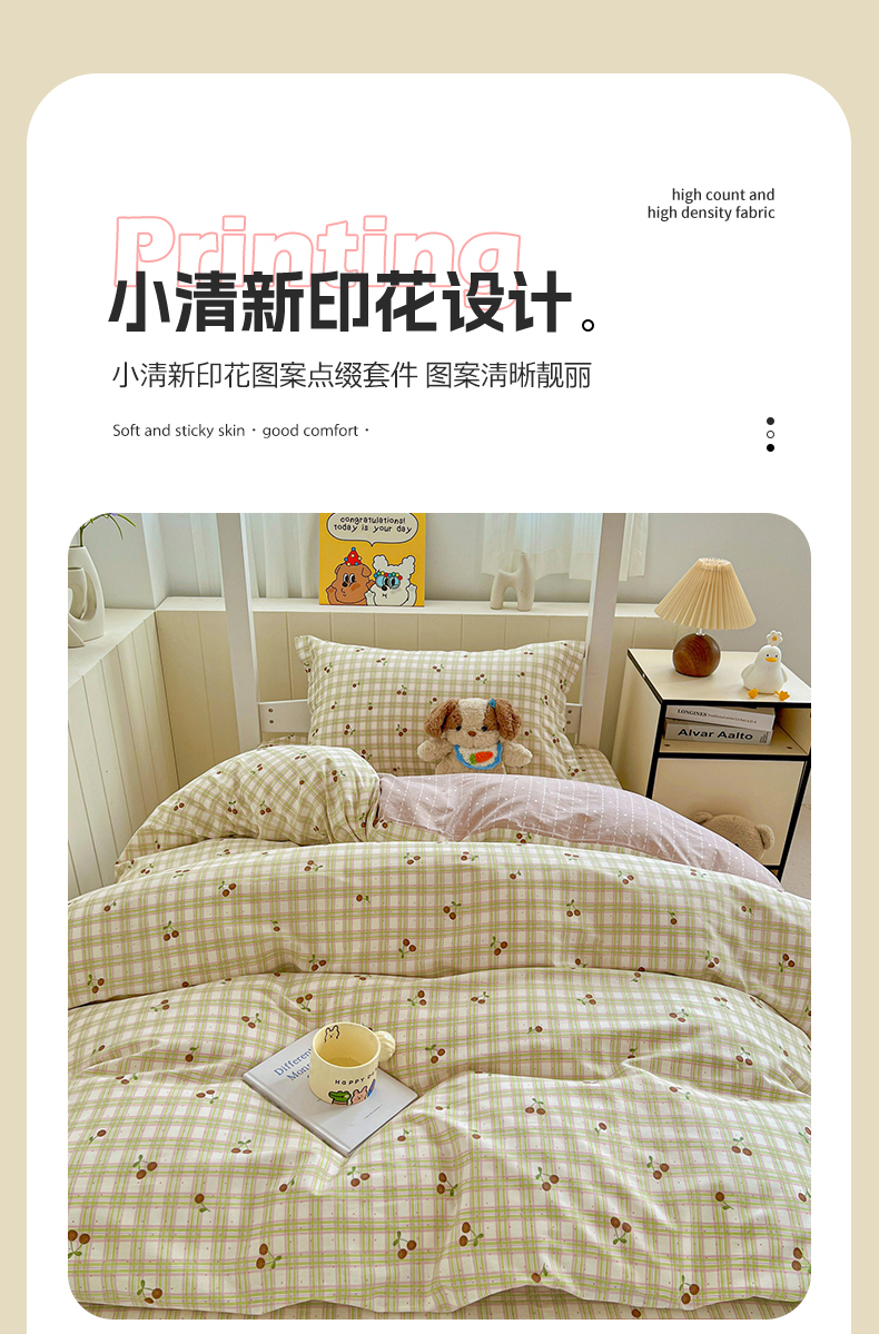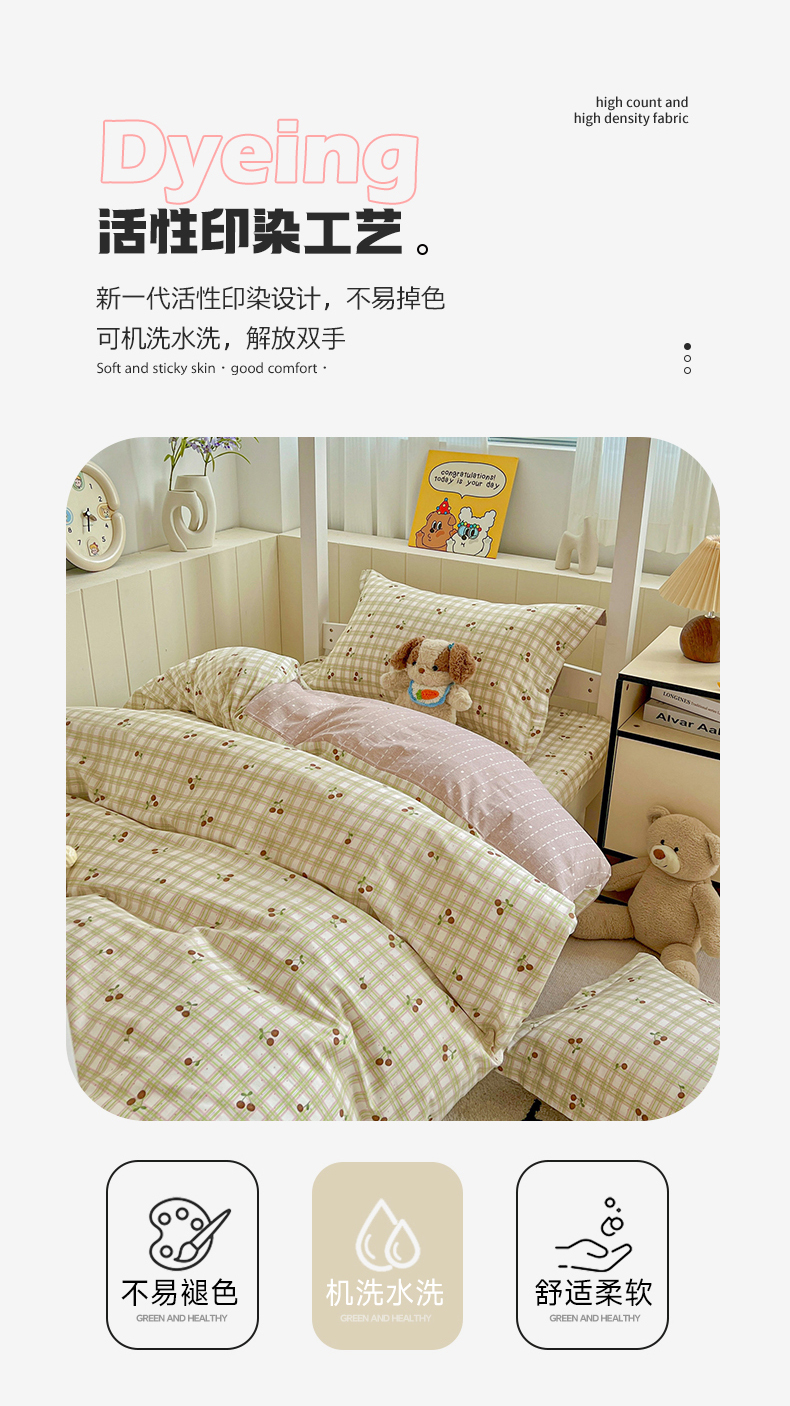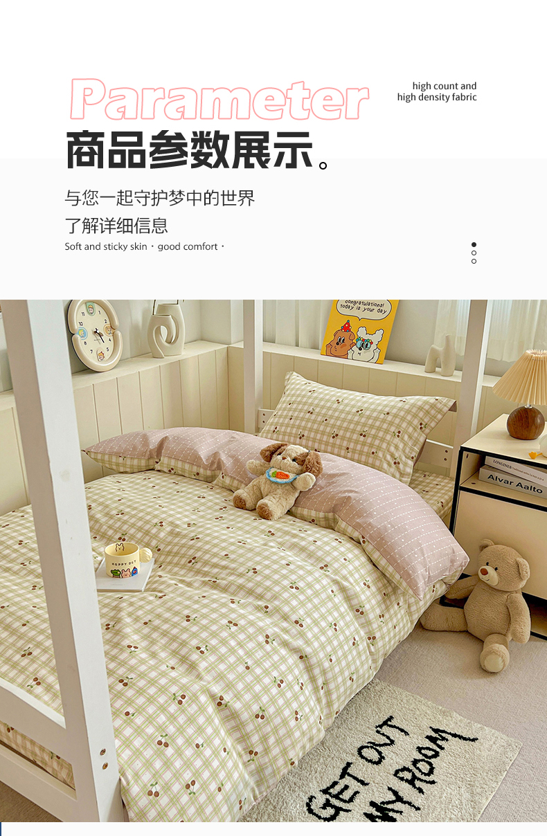商品名称:春雨家居 2025新款学生季全棉三件套(预留缩水) 23.酸甜樱桃