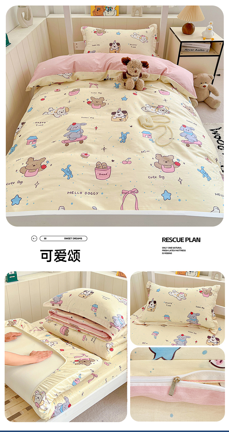 (总)春雨家居 2025新款学生季全棉三件套(预留缩水),1.可爱颂,2.海岛菠萝,3.唐顿庄园,4.星星发夹狗,5.摩登熊宝,6.嘉宇格,7.菱格小果,8.格诺狗,9.马里格,11.帕洛迪,12.魅彩格,13.露丝,14.甜美梦境-绿,15.宜家风尚-绿,16.萌萌西高地,17.曼波,18.拿铁米,19.欢乐熊宝,20.摩登主义,21.童趣蜜歌,22.叶中萌熊,23.酸甜樱桃,24.蓝色泡芙狗