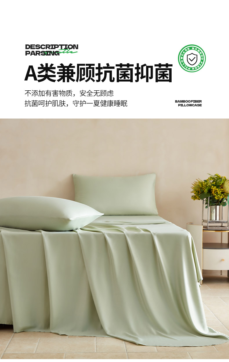 商品名称:轩和家居 2025新款天竹60支竹浆纤维A类婴幼儿级别天然抗菌抑菌系列床单单件-单床单 淡绿