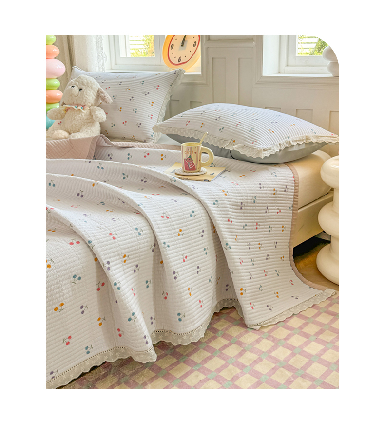 源舜 2025新款全棉法式花边云感双层纱全棉花边床盖三件套 彩樱甜梦