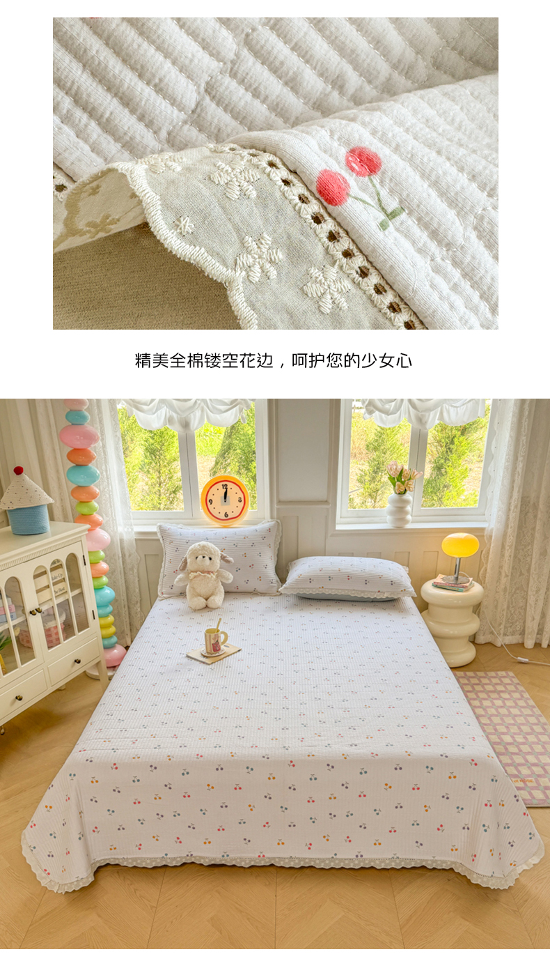 (总)源舜 2025新款云感双层纱全棉法式花边床盖三件套,彩樱甜梦,繁花似锦,海德庄园,花园小熊,蓝色蝴蝶结,蓝色花园,玫瑰物语,七彩蝴蝶结,浅樱啵啵,莎莉花园,碎花熊梦,甜心小兔,兔斯基,小花萝莉,星点兔影,雨蝶,云间甜纹