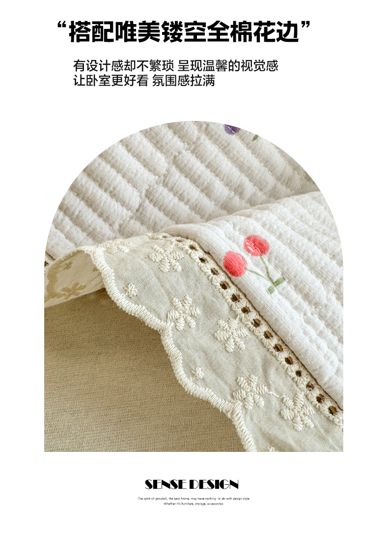 商品名称:源舜 2025新款全棉法式花边云感双层纱全棉花边床盖三件套 彩樱甜梦