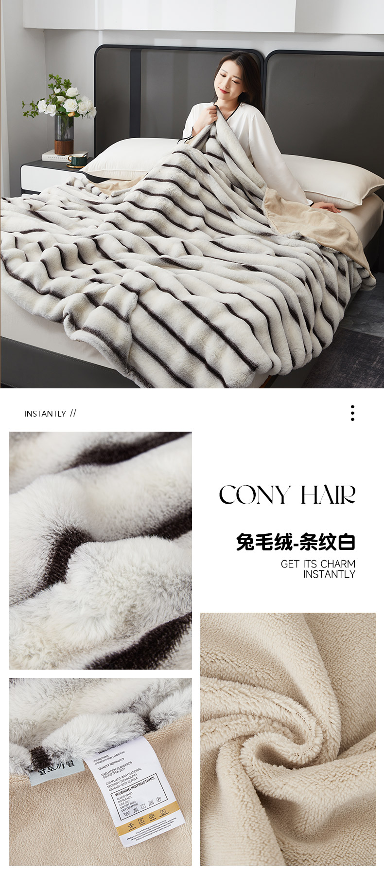 库里梦家纺2025新款跨级专供加厚兔毛美拉德毛毯 米色