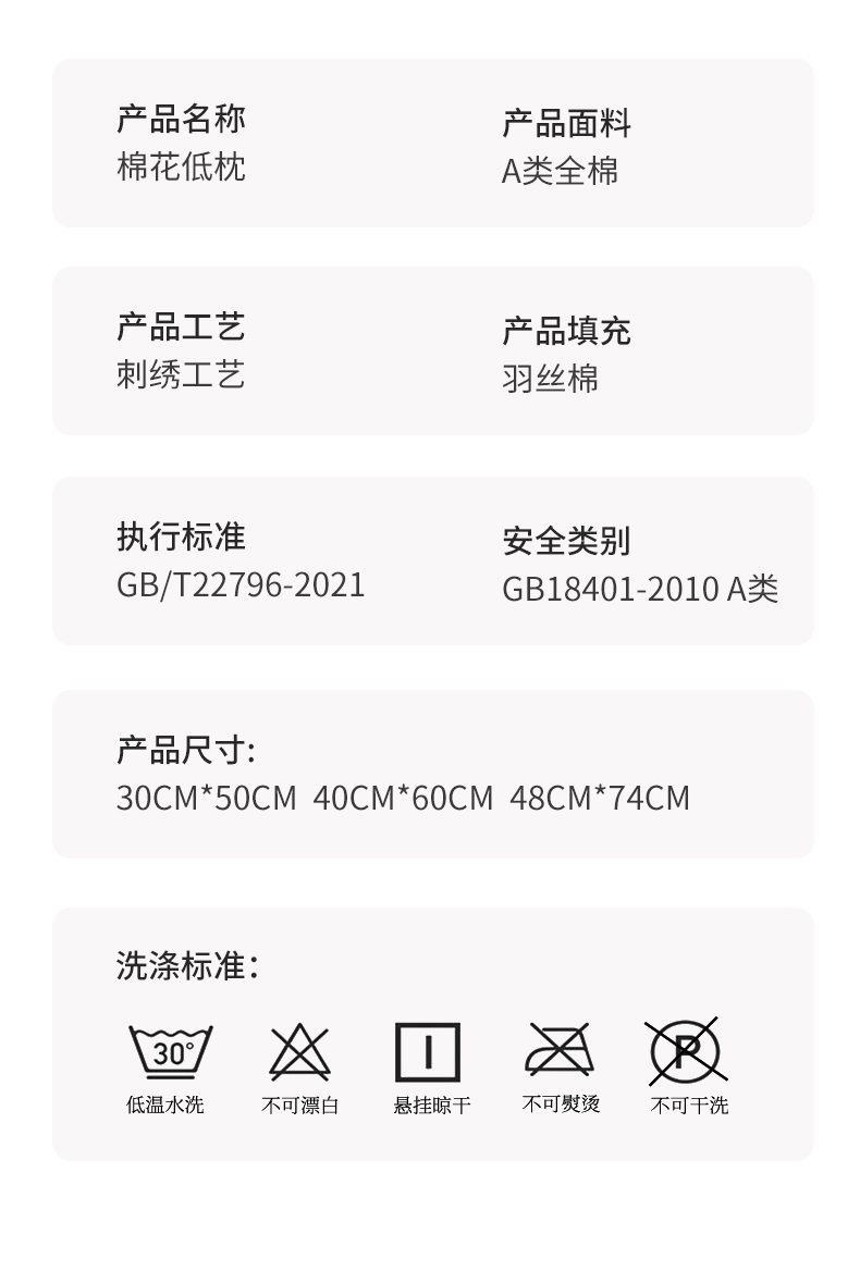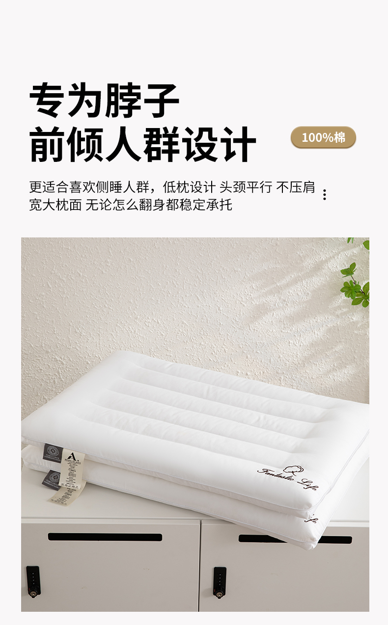 商品名称:(总)仁宇枕业 2025新款新品全棉A类母婴级儿童学生成人新疆棉花低枕头枕芯