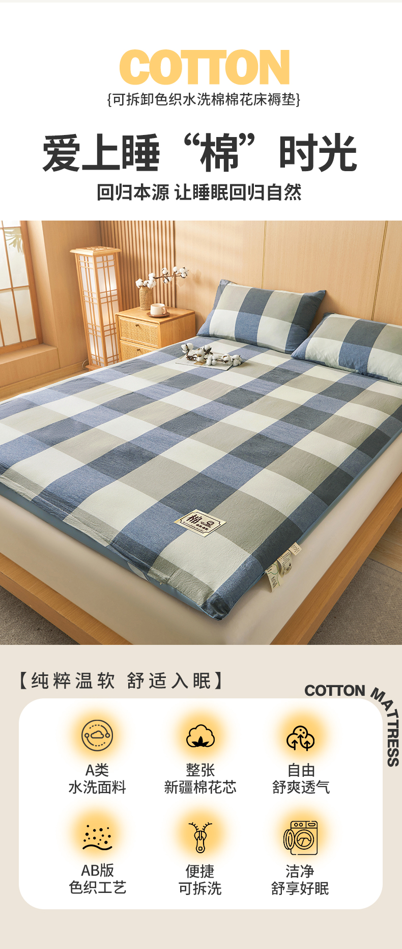 • 91家纺网 家纺一手货源 找家纺 (总)晓时候 2025新款可拆洗新疆棉花床垫被褥子加厚冬被学生宿舍水洗棉床垫套-宿舍款,格韵-灰,格韵-粉,格韵-蓝,蜜粉大格,蜜粉小格,蜜桔格,青春格,森林绿,天蓝小格,烟灰大格