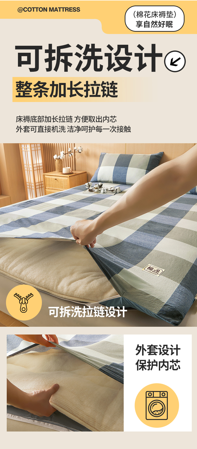(总)晓时候 2025新款可拆洗新疆棉花床垫被褥子加厚冬被学生宿舍水洗棉床垫套-宿舍款,格韵-灰,格韵-粉,格韵-蓝,蜜粉大格,蜜粉小格,蜜桔格,青春格,森林绿,天蓝小格,烟灰大格