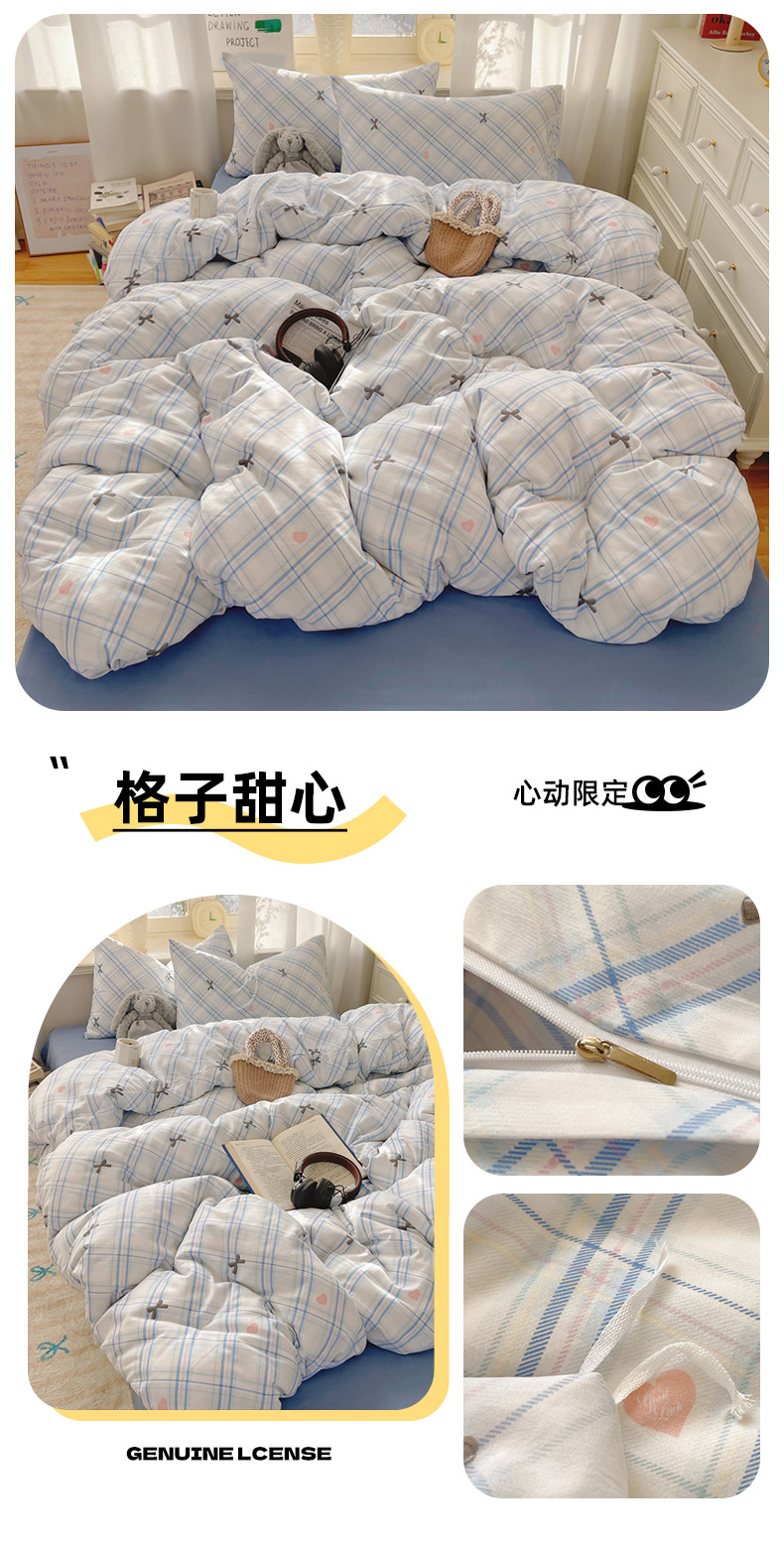 当前位置: 91家纺网 > 商品网购 > 床品套件 > 四件套 > 双层纱四件套 > 芷凡家纺 2025新款水洗棉双层纱四件套 格子甜心