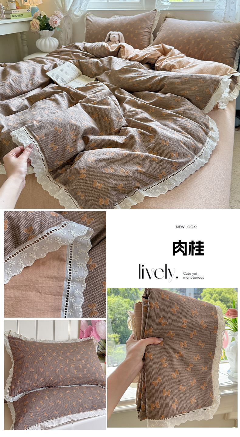 商品名称:Mata蔓塔家 2025新款云感双层纱全棉镂空花边四件套 肉桂