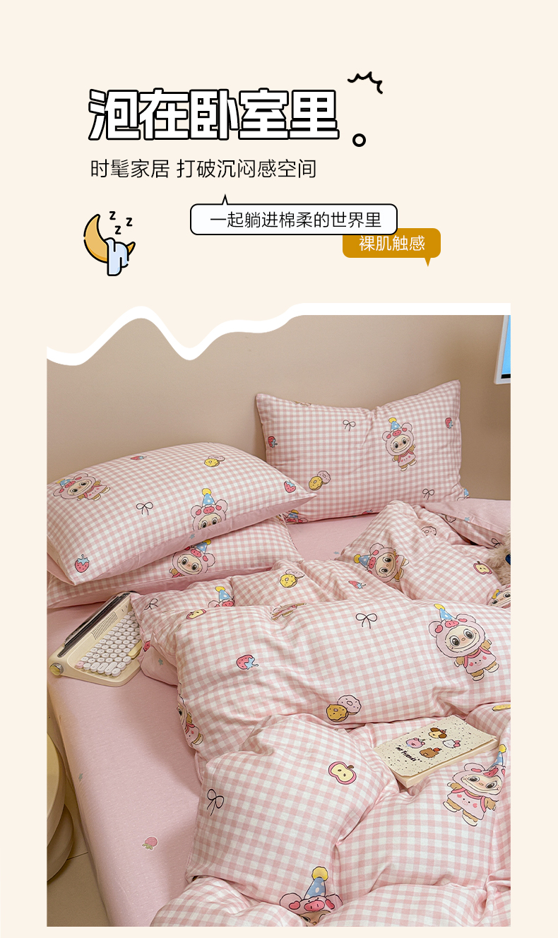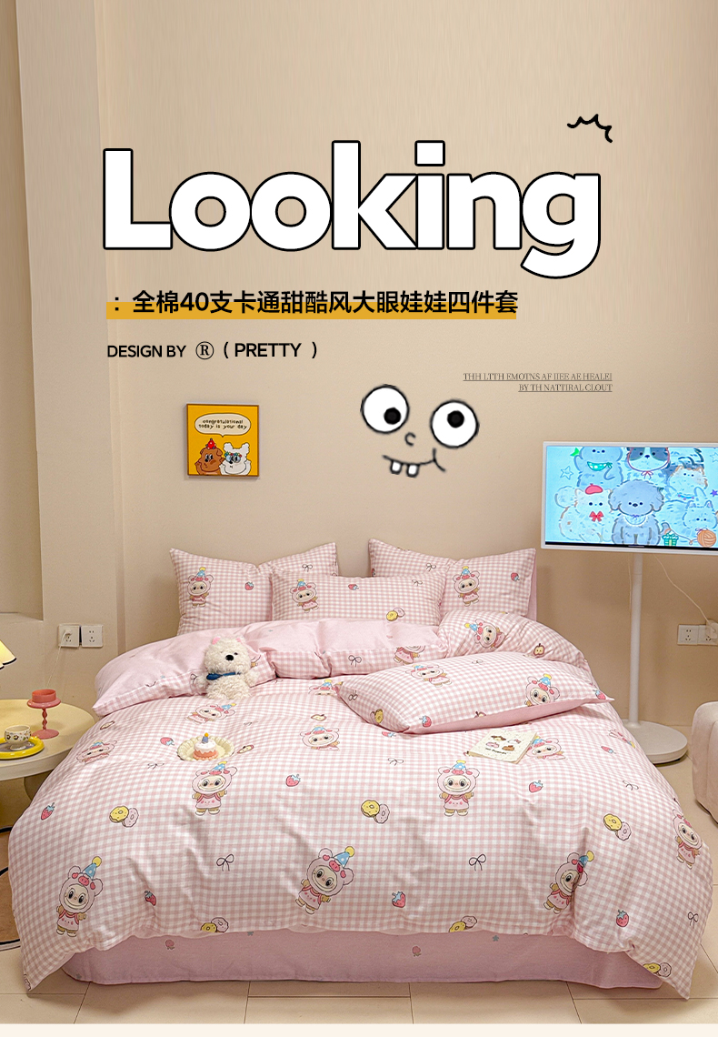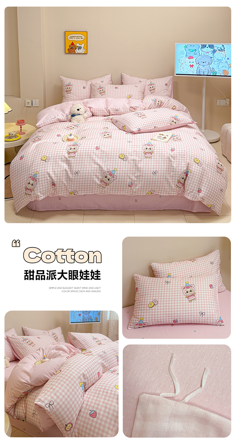 当前位置: 91家纺网 > 商品网购 > 床品套件 > 四件套 > 全棉普通四件套 > 呗旺鹿 2025新款40s全棉纯棉卡通大眼娃娃甜酷风四件套 甜品派大眼娃娃