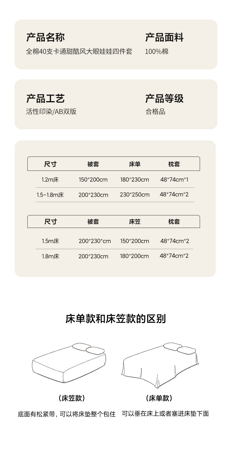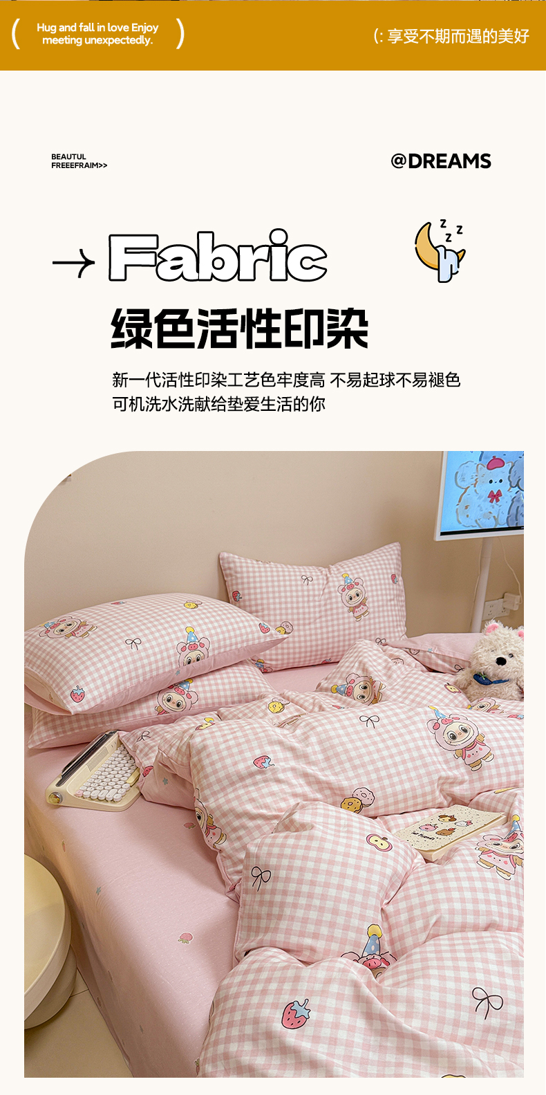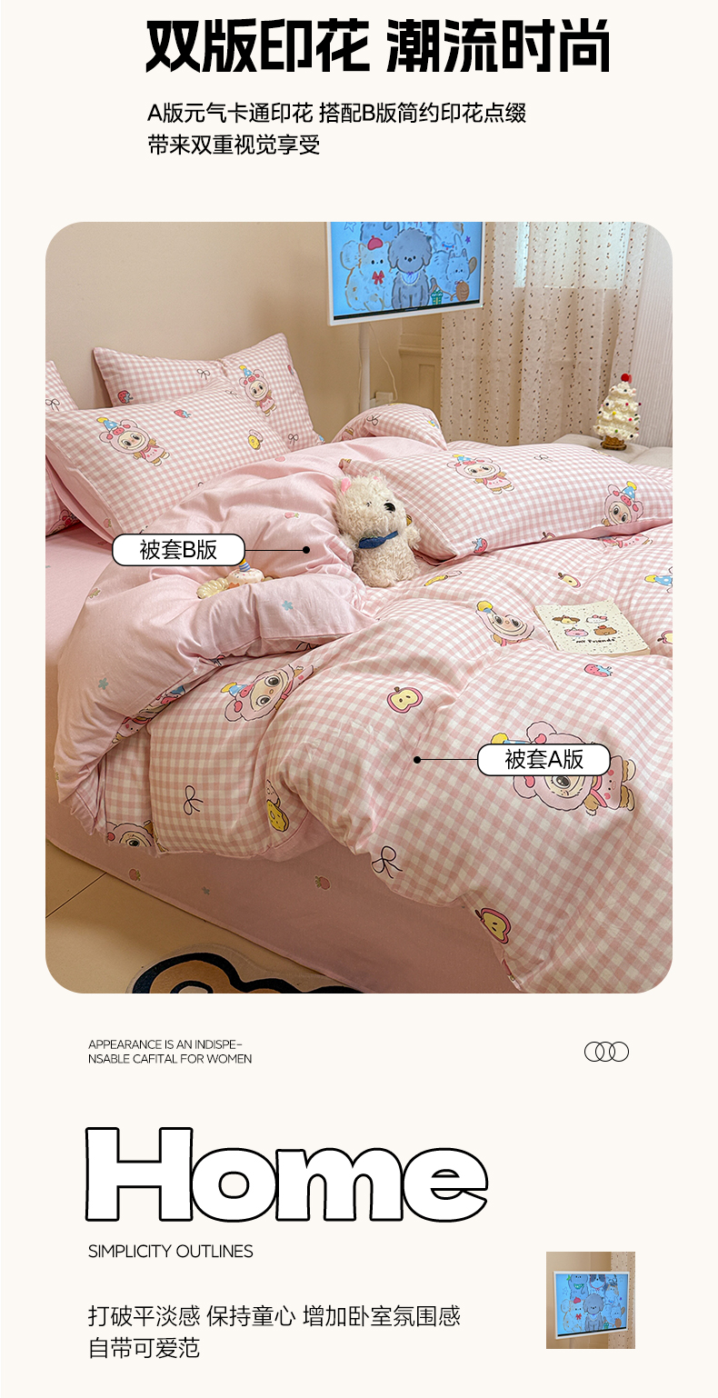 当前位置: 91家纺网 > 商品网购 > 床品套件 > 四件套 > 全棉普通四件套 > 呗旺鹿 2025新款40s全棉纯棉卡通大眼娃娃甜酷风四件套 甜品派大眼娃娃