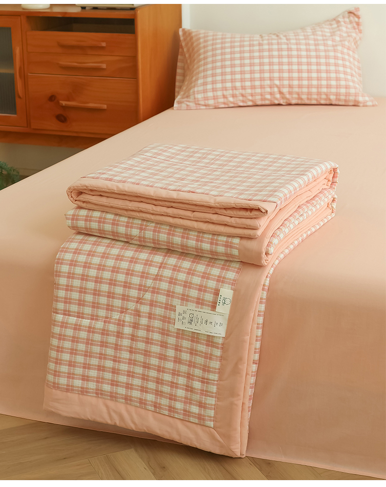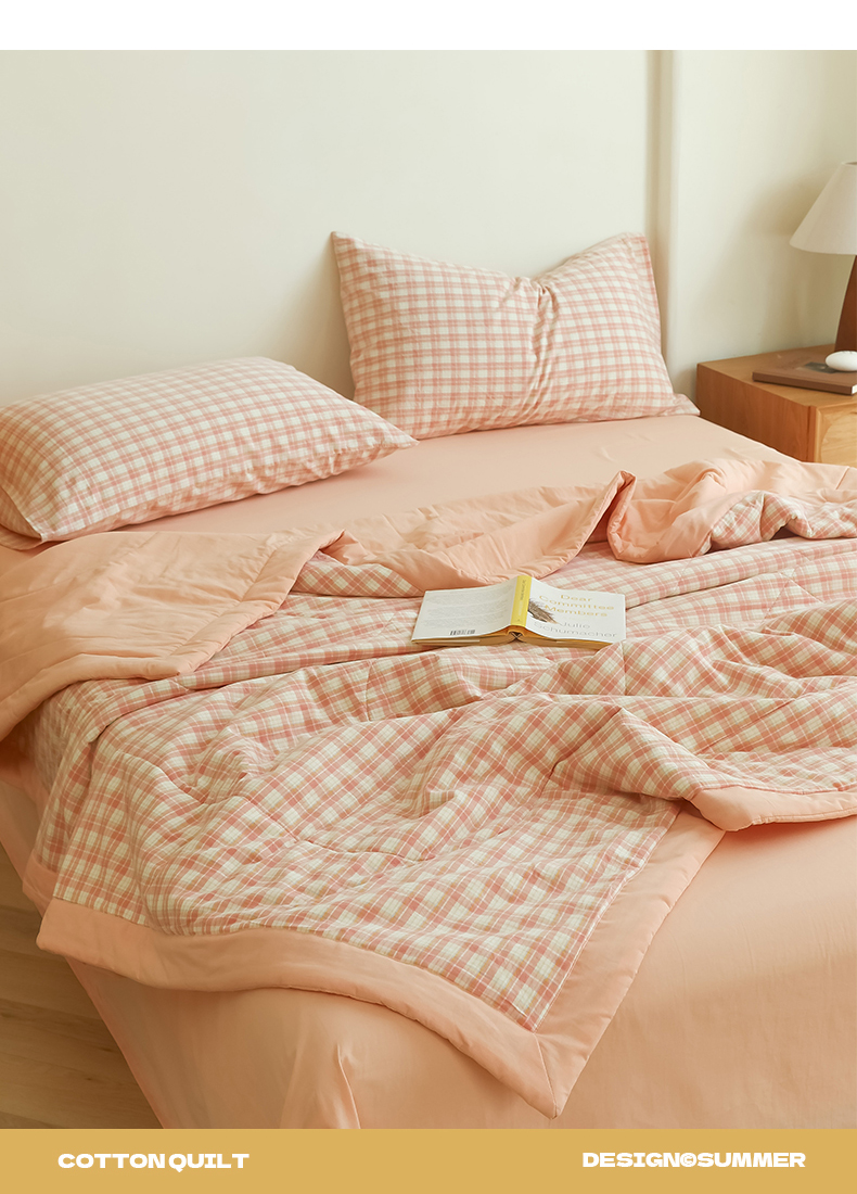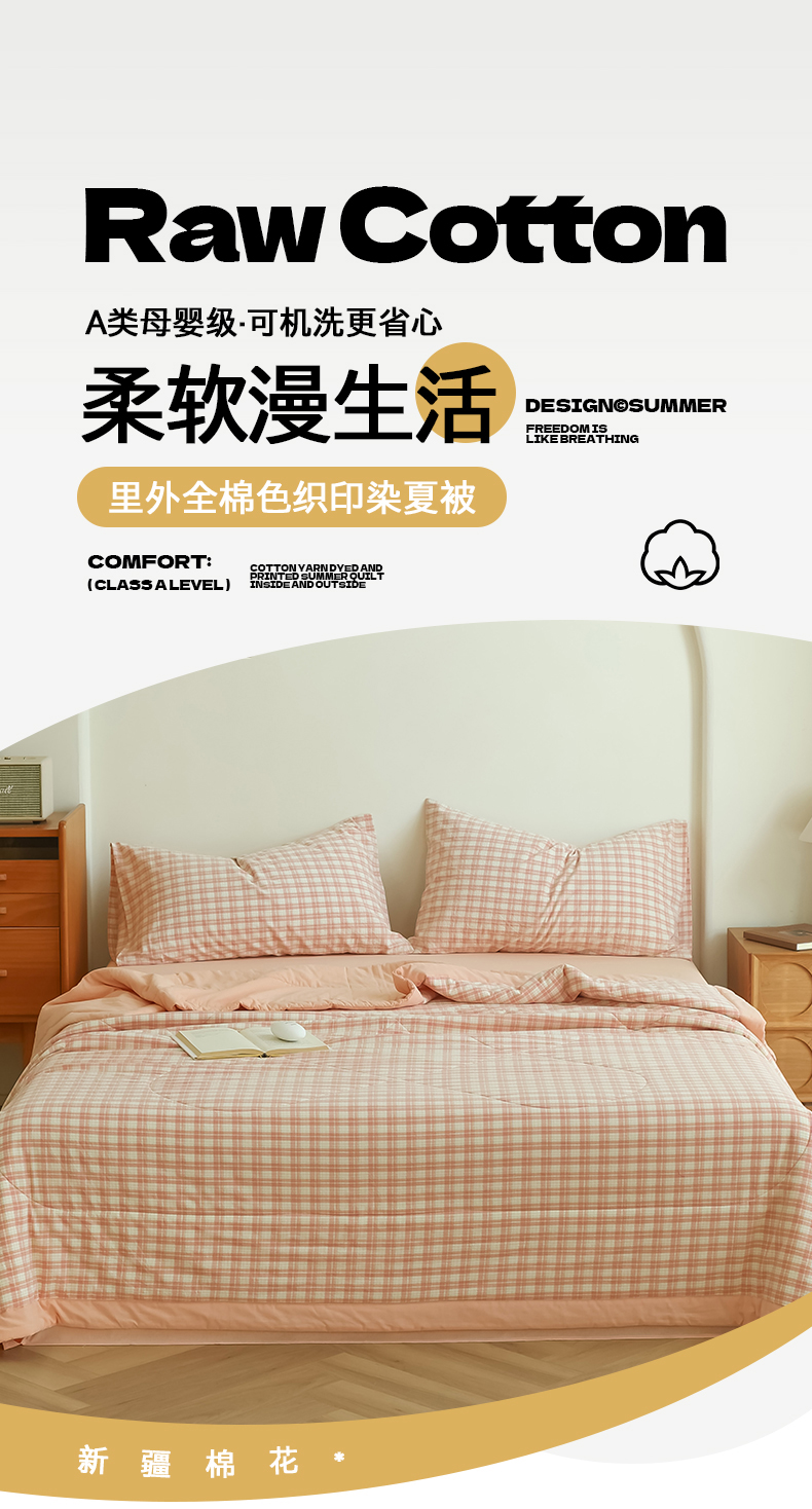 小叮当家纺仓储工厂店 2025新款A类无印风里外全棉水洗棉新疆棉花夏被夏凉被空调被 朵拉粉