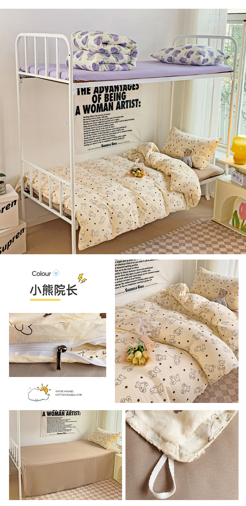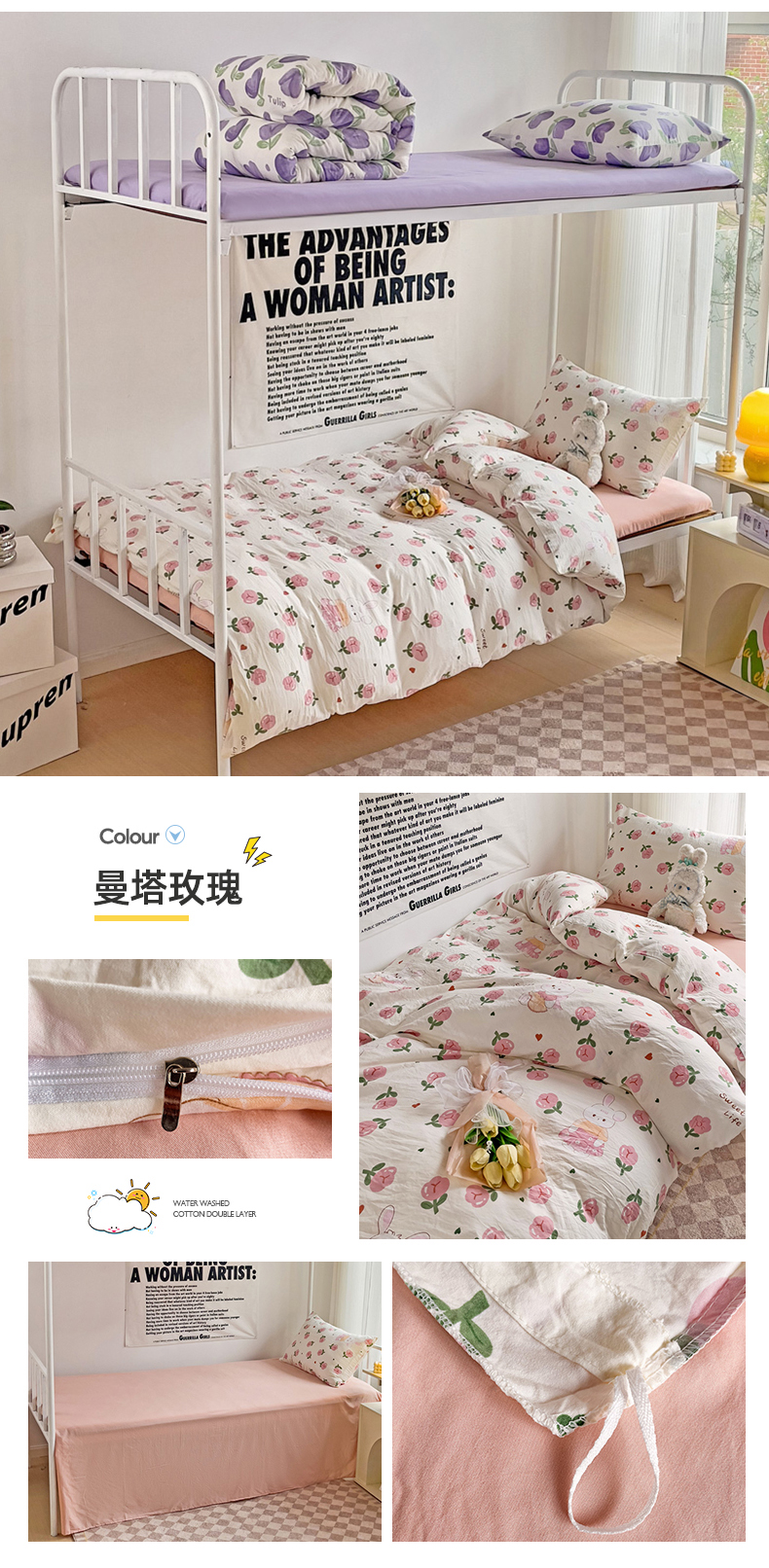 当前位置: 91家纺网 > 商品网购 > 床品套件 > 三件套 > 芷凡家纺 2025新款水洗棉双层纱学生三件套宿舍上下铺三件套 甜心芭乐