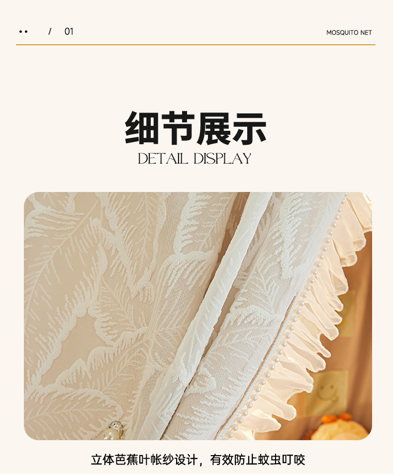 商品名称:飞轮海蚊帐 2025新款雪尼尔法式遮光床帘-XD系列 芭蕉叶-香槟