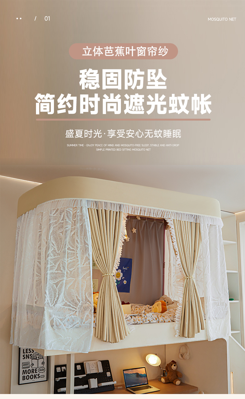 飞轮海蚊帐 2025新款强遮光防蚊学生蚊帐-XZ-99(靠墙帘选配)熊猫宝,熊猫宝