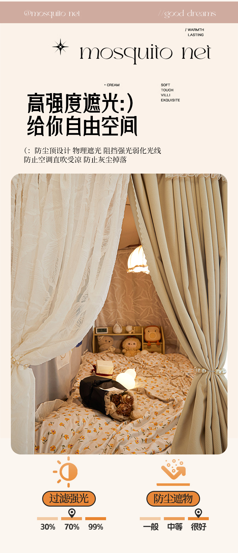(总)飞轮海 2025新款全包遮光防蚊蚊帐Z31,黛蓝,奶油黄,香槟