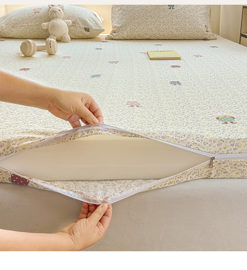• 91家纺网 家纺一手货源 找家纺 多品家纺 2025新款超柔双层纱大床单品床垫套 泡芙兔兔