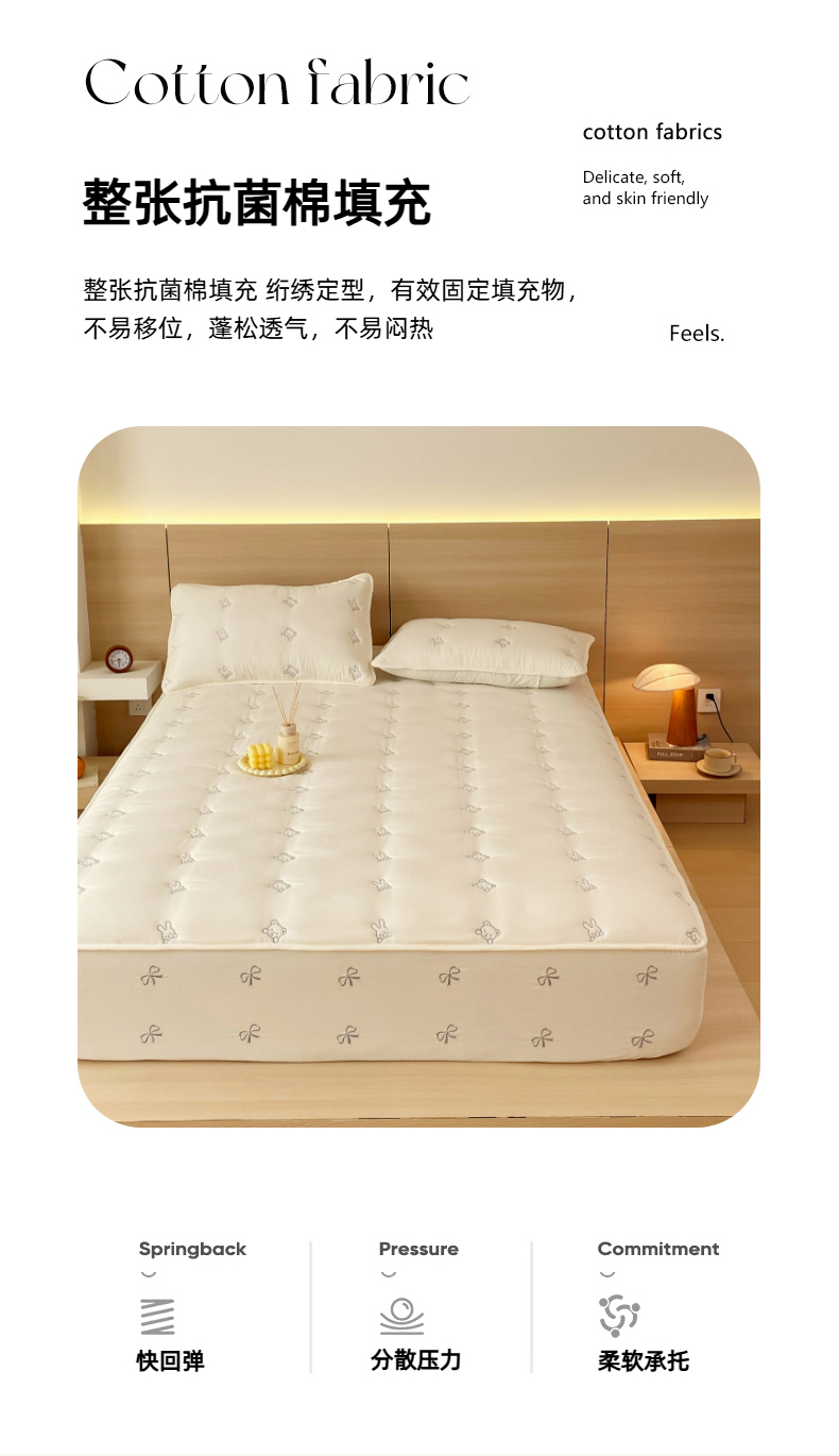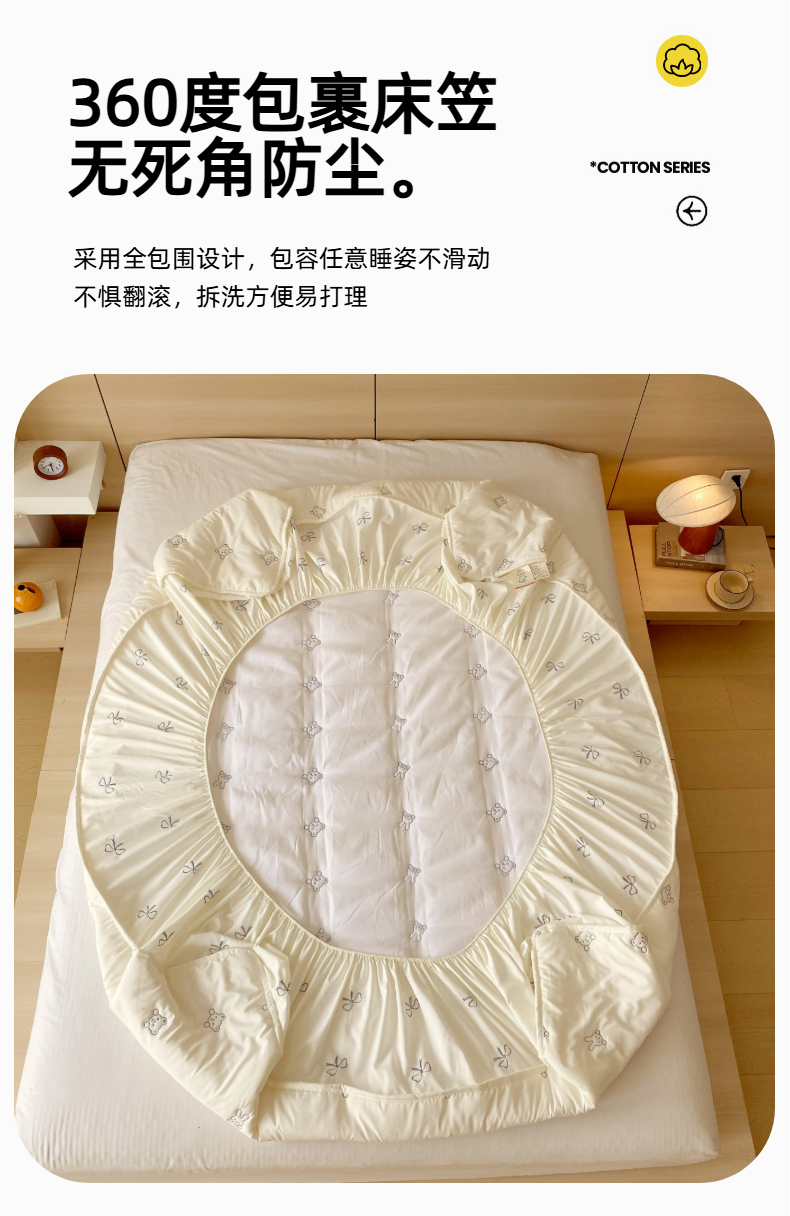尊康家纺(原磊科) 2024新款亲肤奶昔棉夹棉床裙-风雅 风雅-奶白,风雅-奶白
