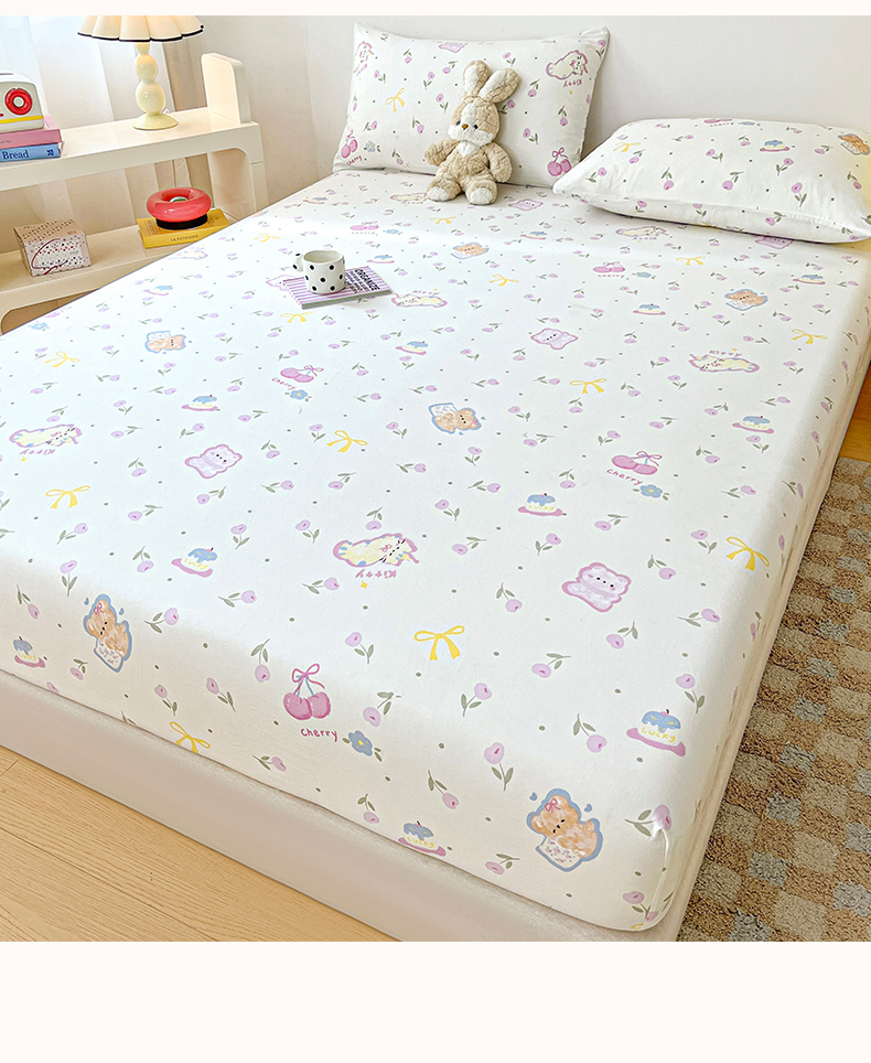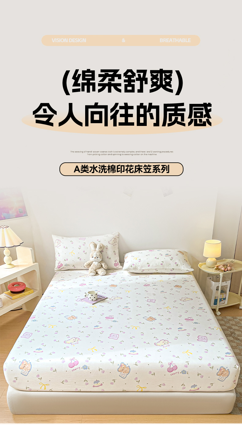 盛秋家纺 2025新款A类水洗棉卡通印花床笠单品床笠单件单床笠 组合图仅供展示