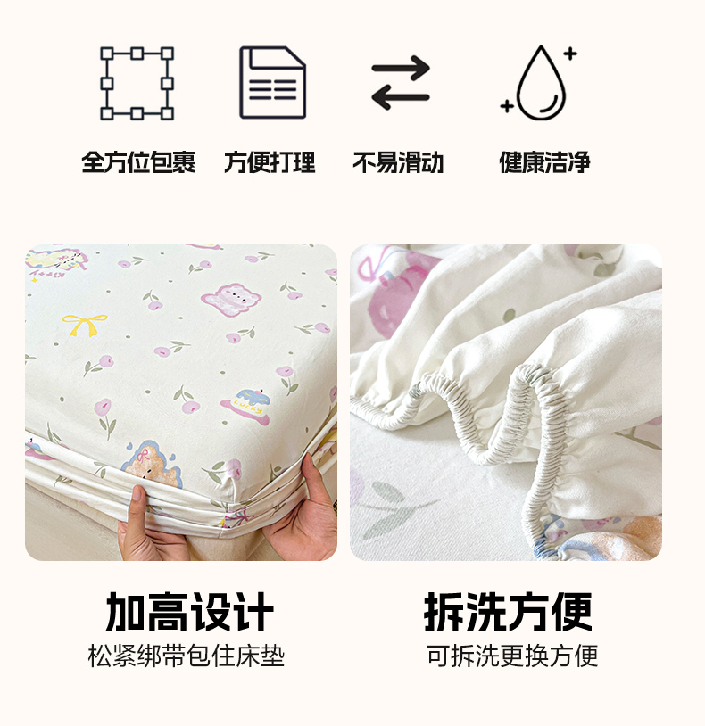 商品名称:盛秋家纺 2025新款A类水洗棉卡通印花床笠单品床笠单件单床笠 组合图仅供展示