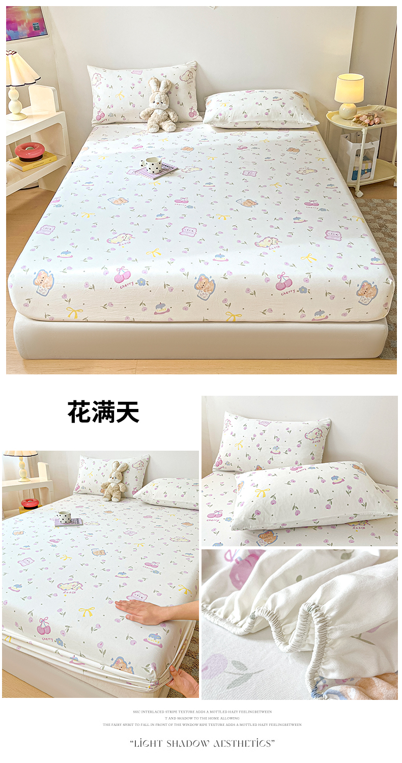 (总)盛秋家纺 2025新款A类水洗棉卡通印花床笠单品床笠单件单床笠,花满天,欢乐狗,开心乐园,开心派对,腊肠狗,铃兰,萌宠乐园,着迷,组合图仅供展示