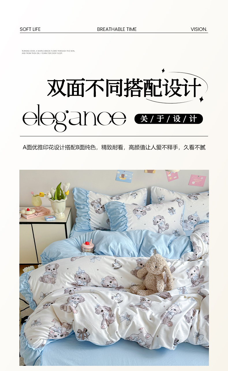 当前位置: 91家纺网 > 商品网购 > 床品套件 > 四件套 > 双层纱四件套 > 优卡迪家纺馆 2025新款A类针织棉有氧双层纱花边款四件套 知音