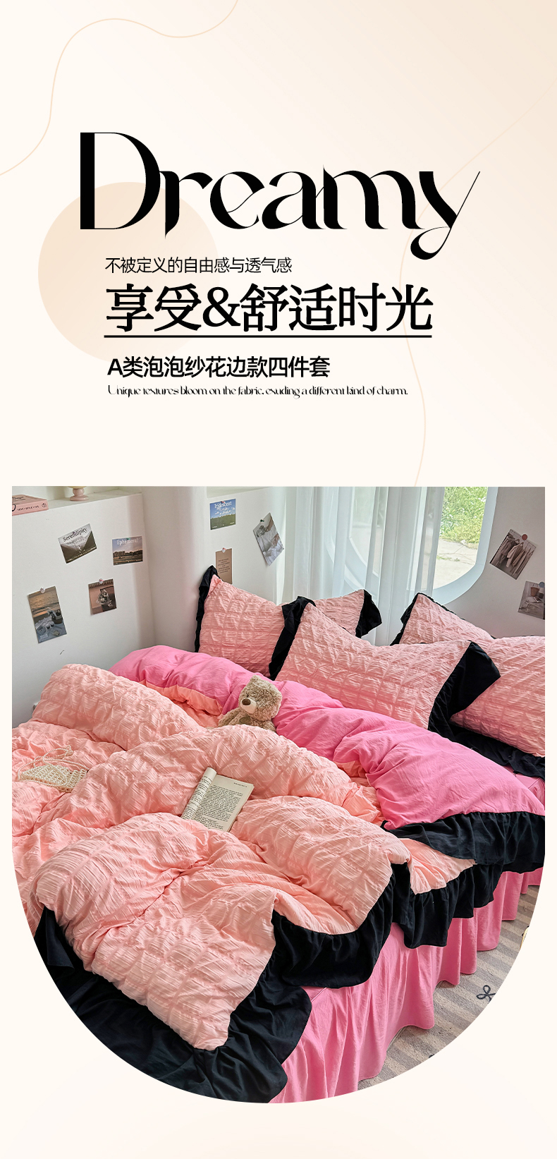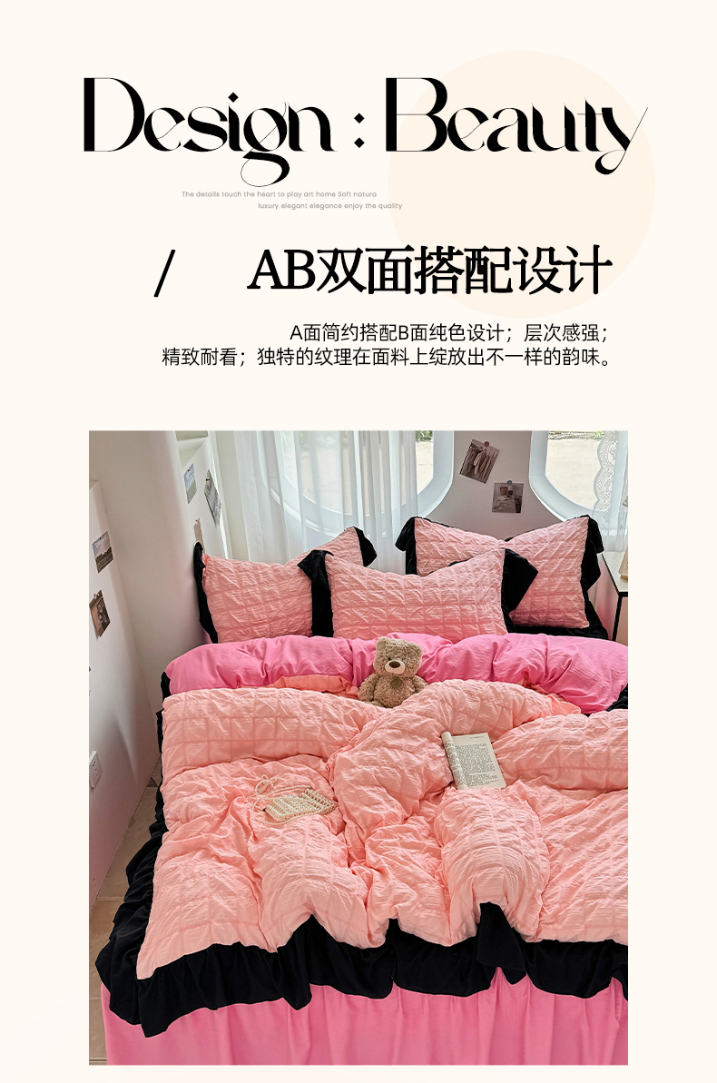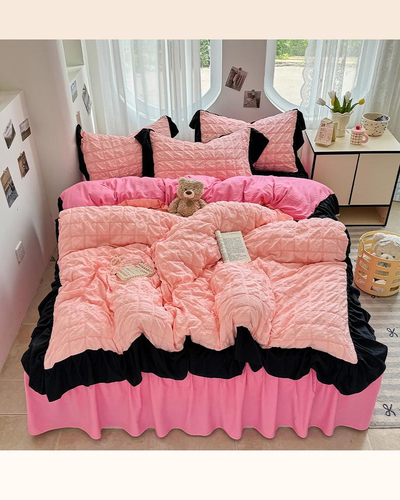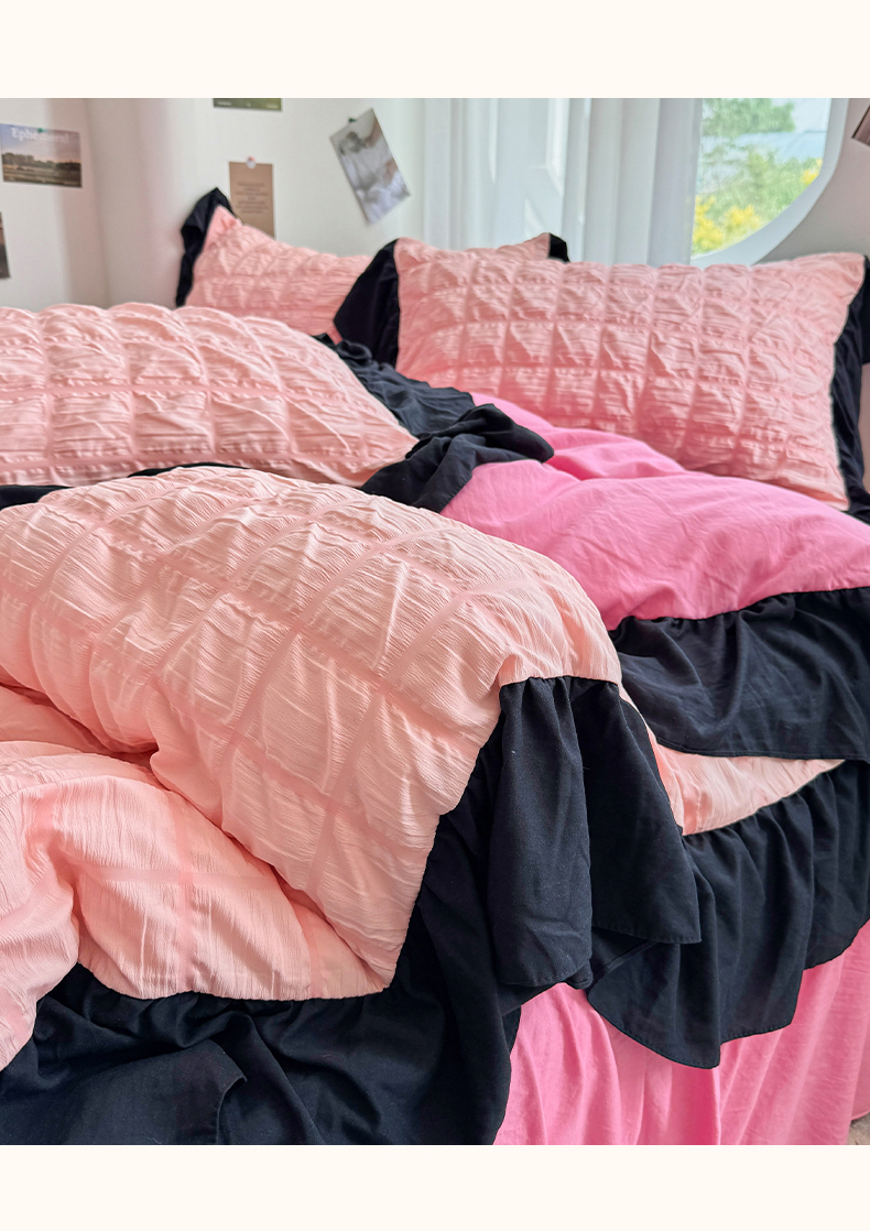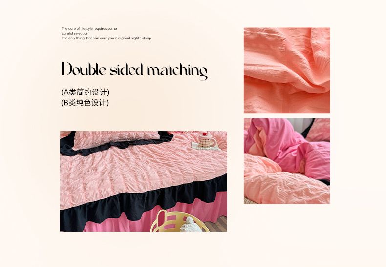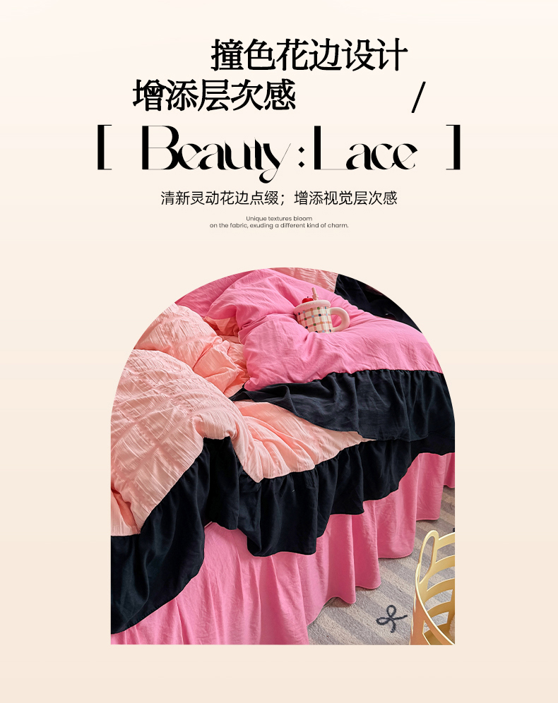 当前位置: 91家纺网 > 商品网购 > 床品套件 > 四件套 > 其它四件套 > 优卡迪家纺馆 2025新款亲肤舒适A类法式泡泡纱花边款四件套 奶油蜜桃