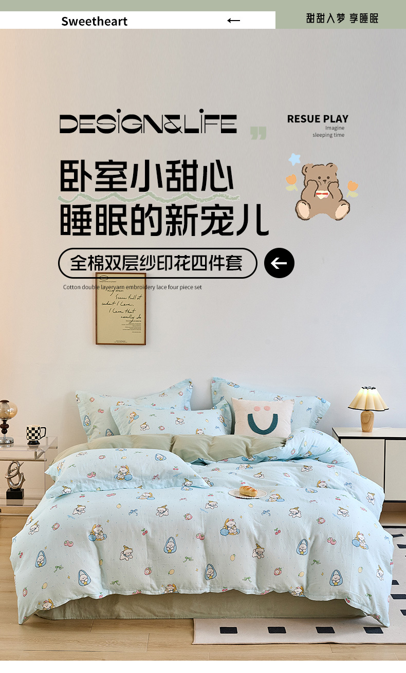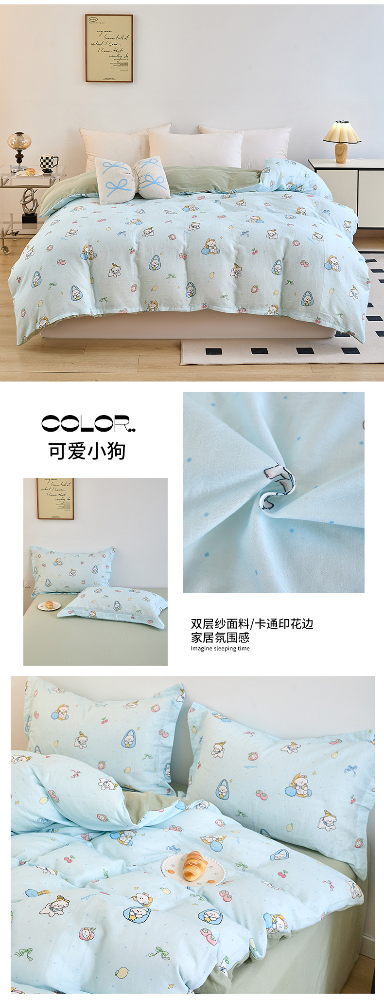 当前位置: 91家纺网 > 商品网购 > 床品套件 > 四件套 > 全棉普通四件套 > 2025新款全棉双层纱印花四件套(第二批)可爱小狗