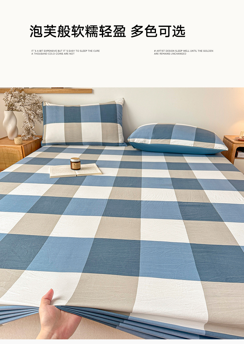(总)盛秋家纺 2025新款A类水洗棉格子印花床笠单品床笠单件单床笠,蓝小格,保罗,组合图仅供展示,粉小格,格瑞斯,黑灰中条,灰大格,简约,蓝大格,蓝调,抹茶,泡芙黄,瑞克