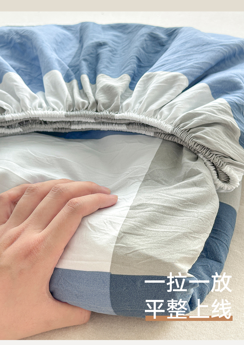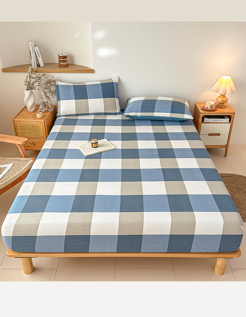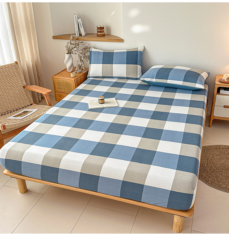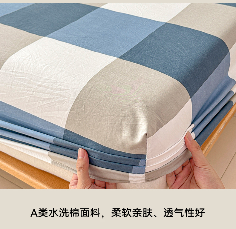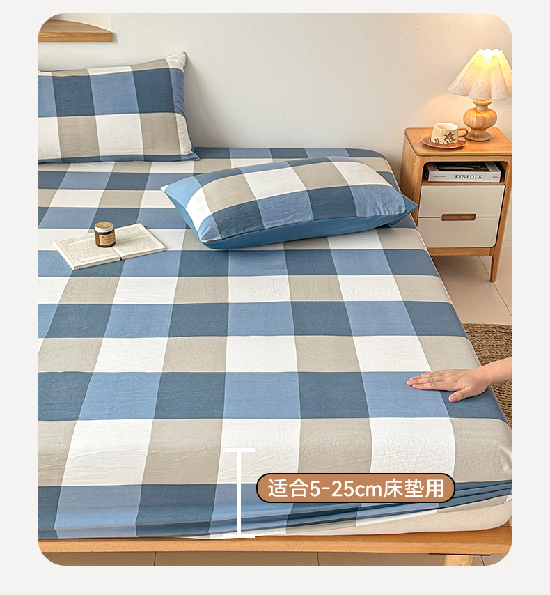盛秋家纺 2025新款A类水洗棉格子印花床笠单品床笠单件单床笠 蓝大格