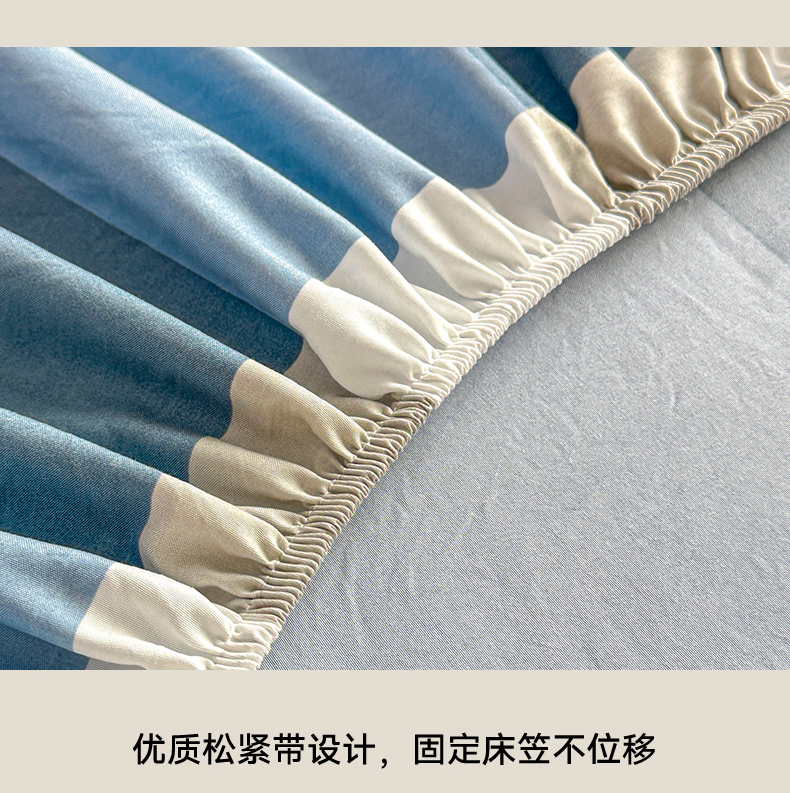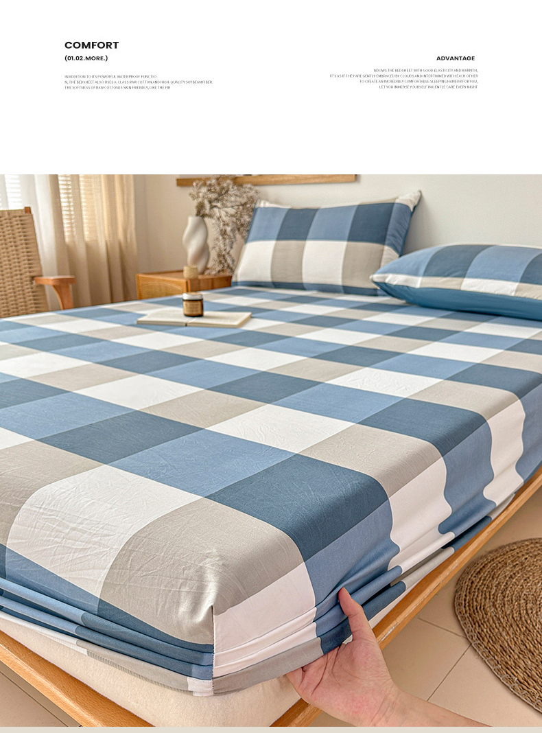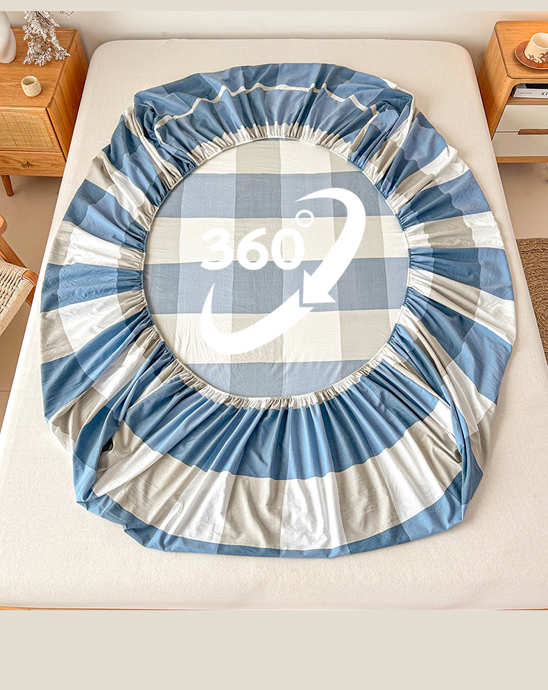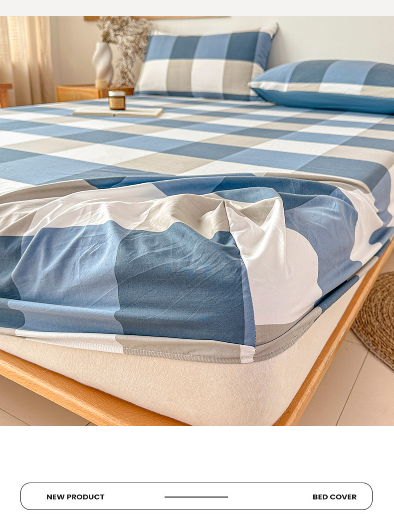 盛秋家纺 2025新款A类水洗棉格子印花床笠单品床笠单件单床笠 蓝大格
