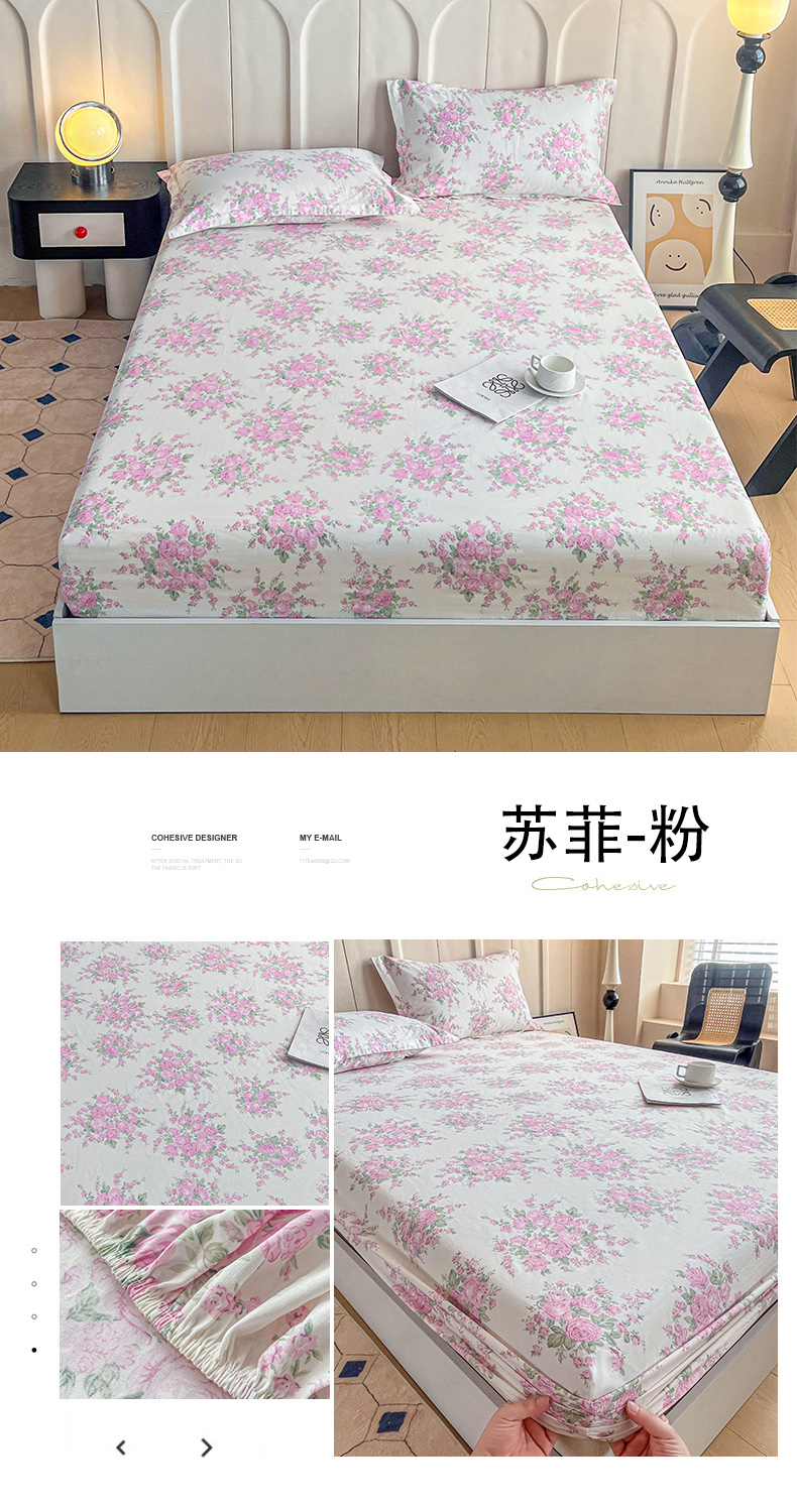 • 91家纺网 家纺一手货源 找家纺 金盛纺 2025新款13372全棉印花单品床笠 苏菲-粉