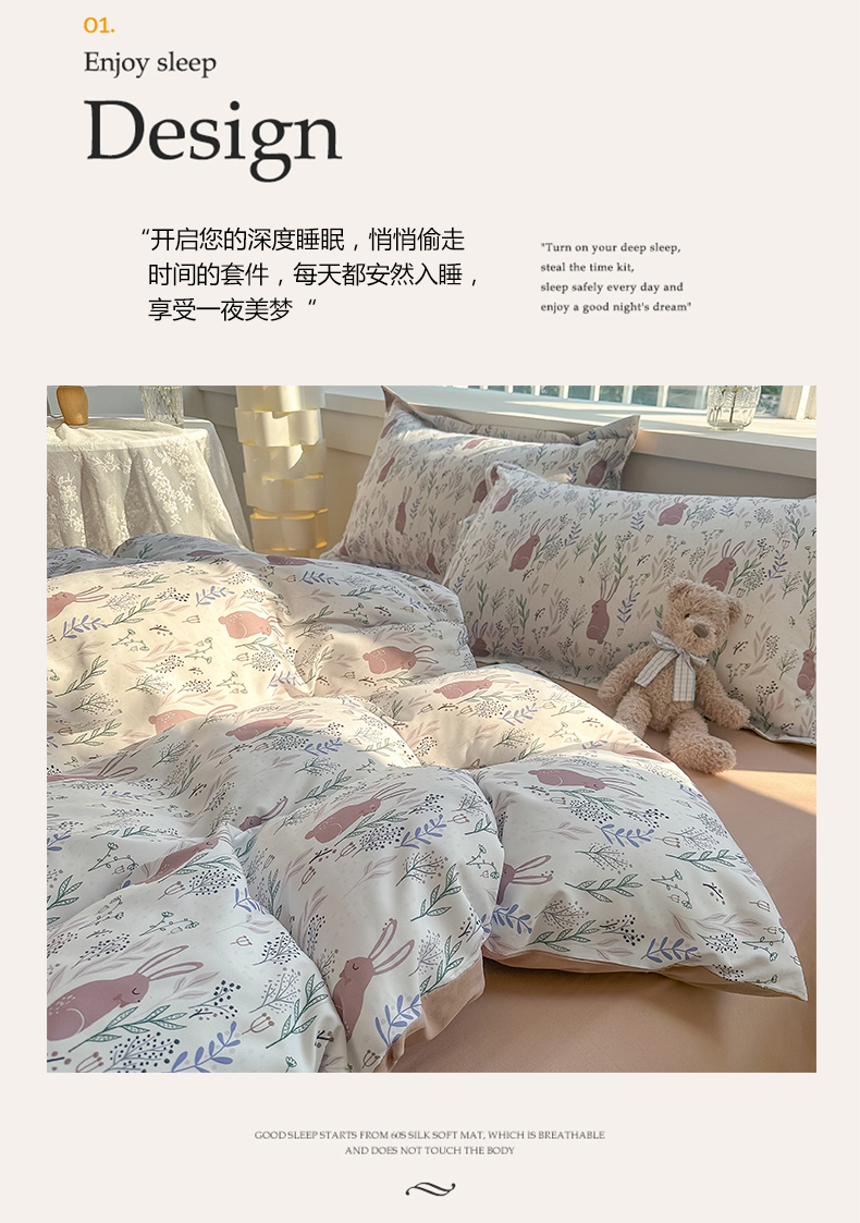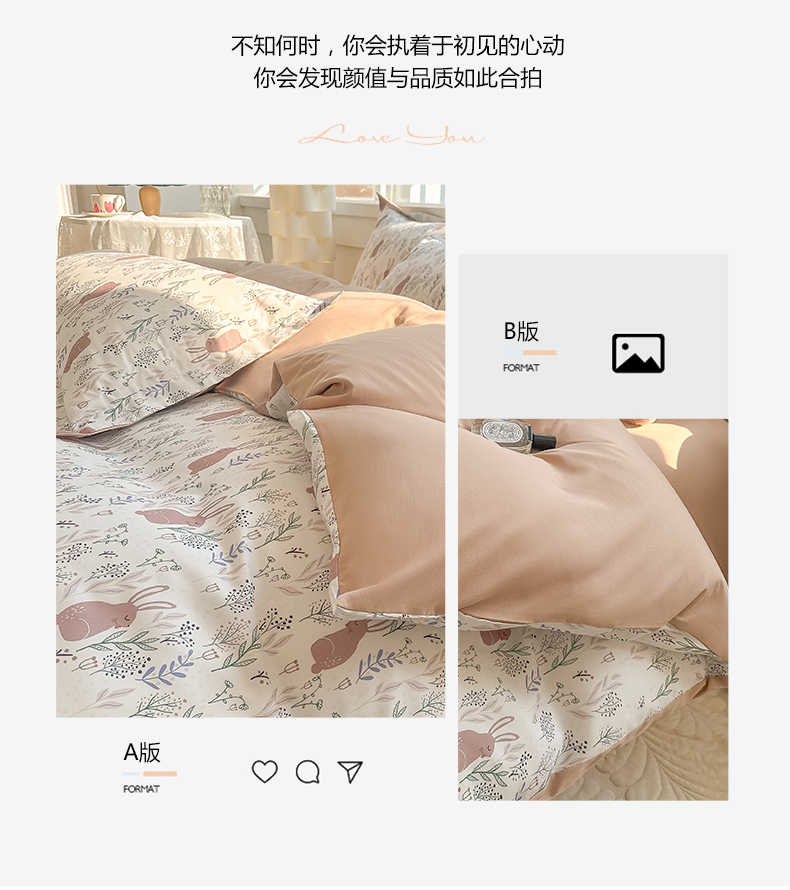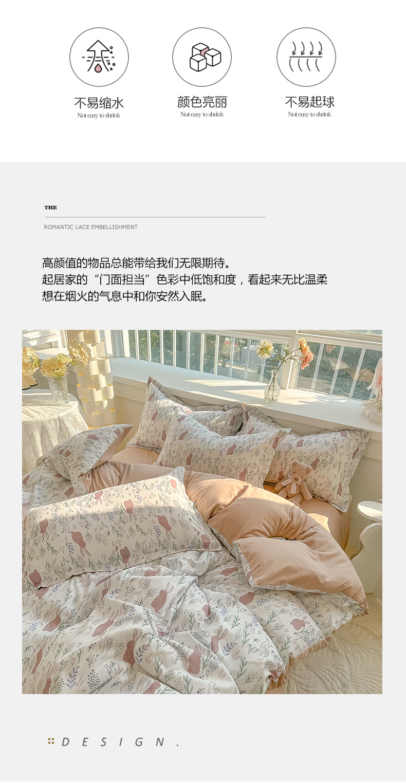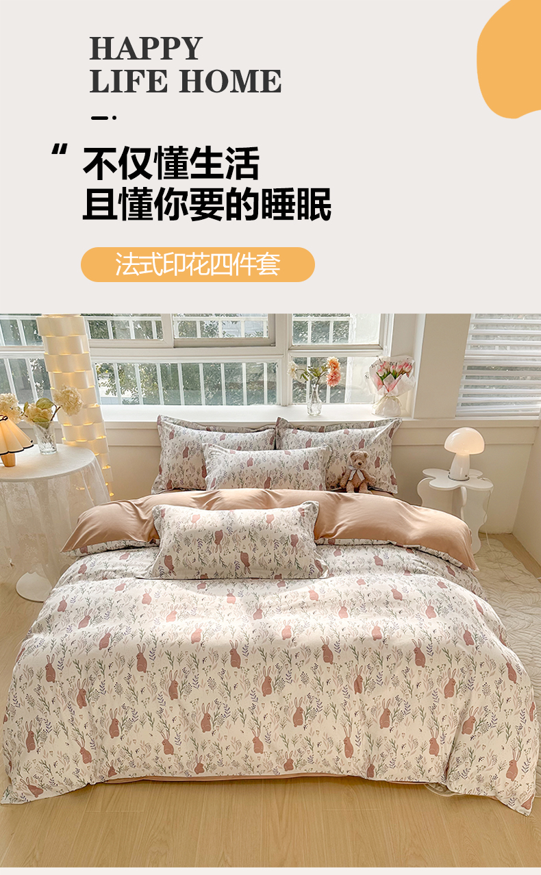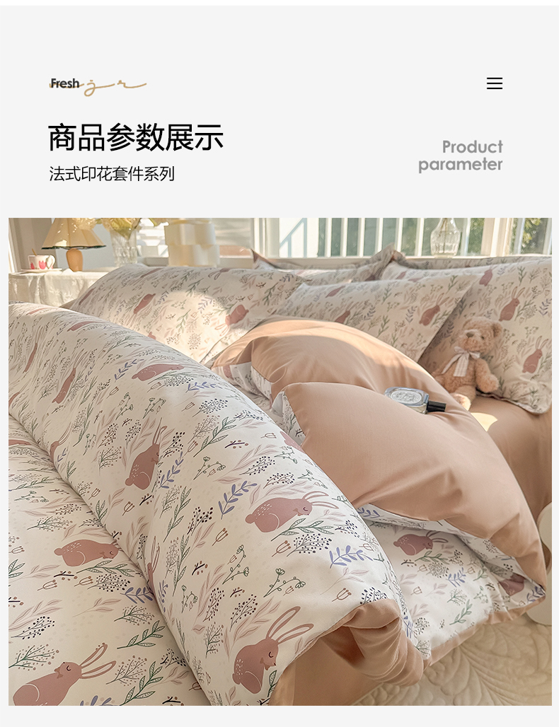 当前位置: 91家纺网 > 商品网购 > 床品套件 > 四件套 > 其它四件套 > 爱彼家纺 2025新款加厚法式印花四件套 法式萌兔花园