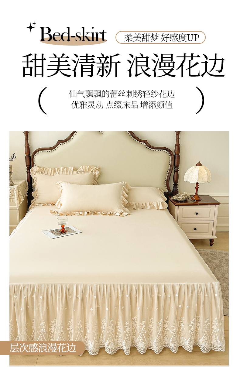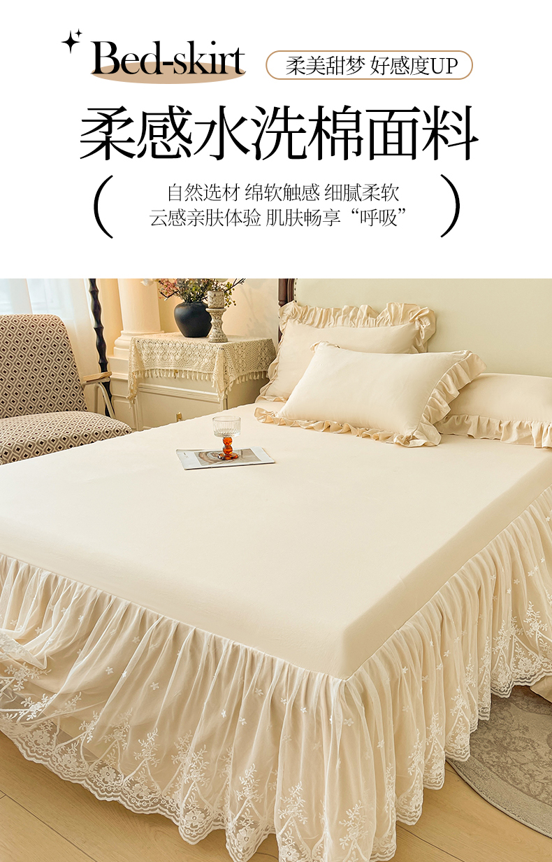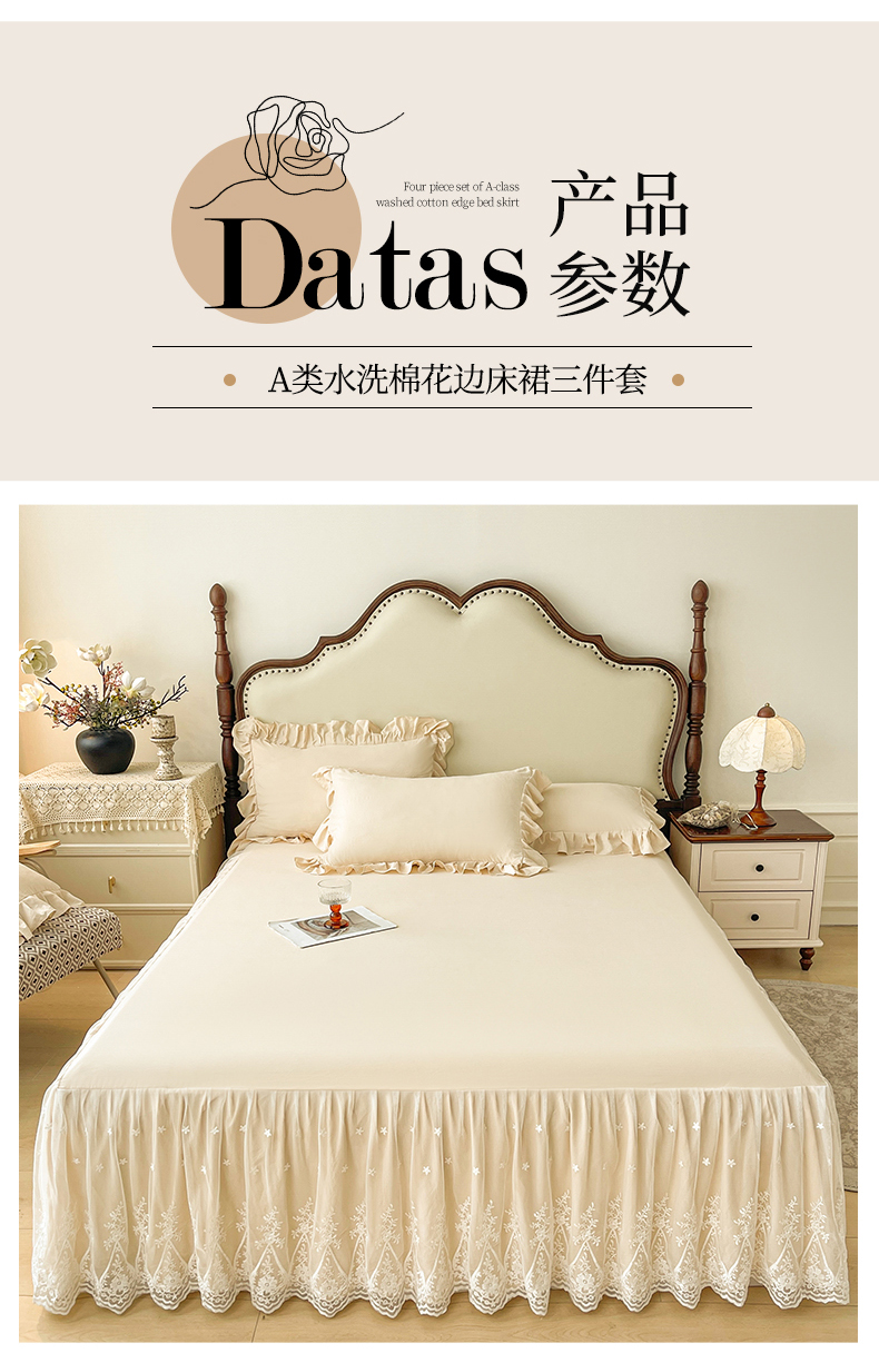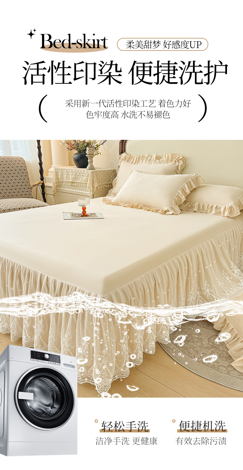 当前位置: 91家纺网 > 商品网购 > 床品套件 > 三件套 > 好儿喜家纺 2025新款A类水洗棉花边床裙蕾丝床罩三件套-梦之香 梦之香-香槟