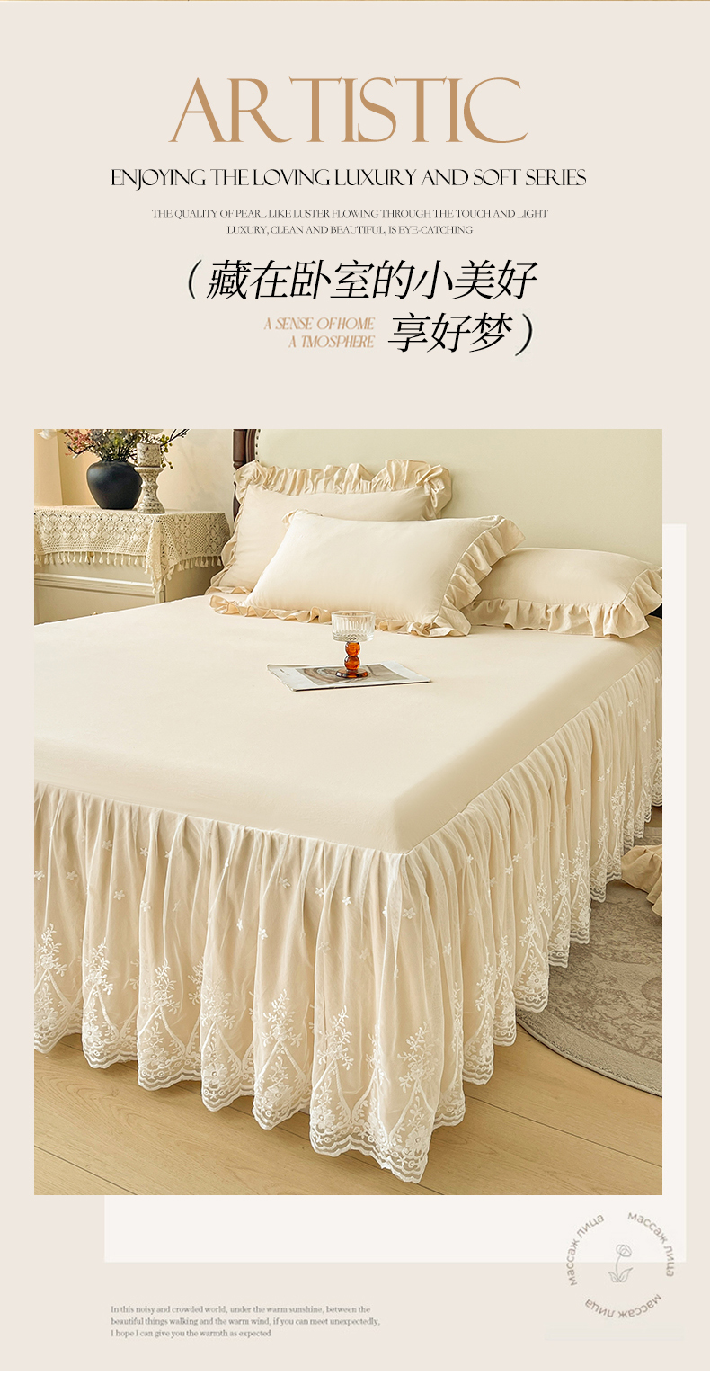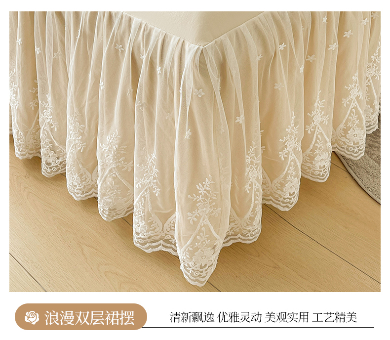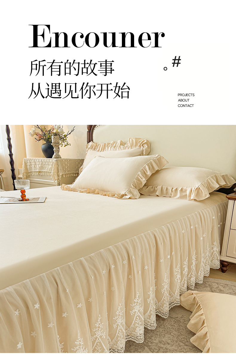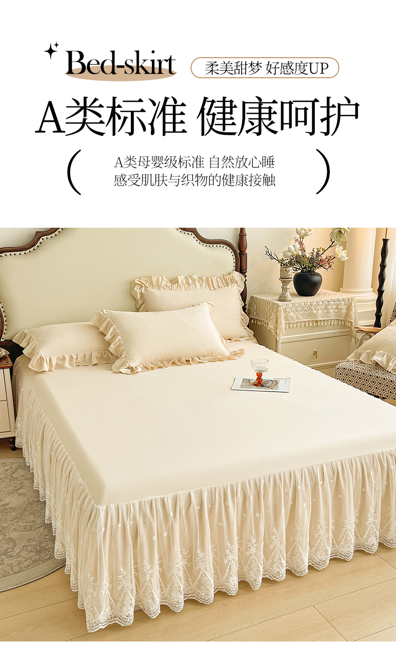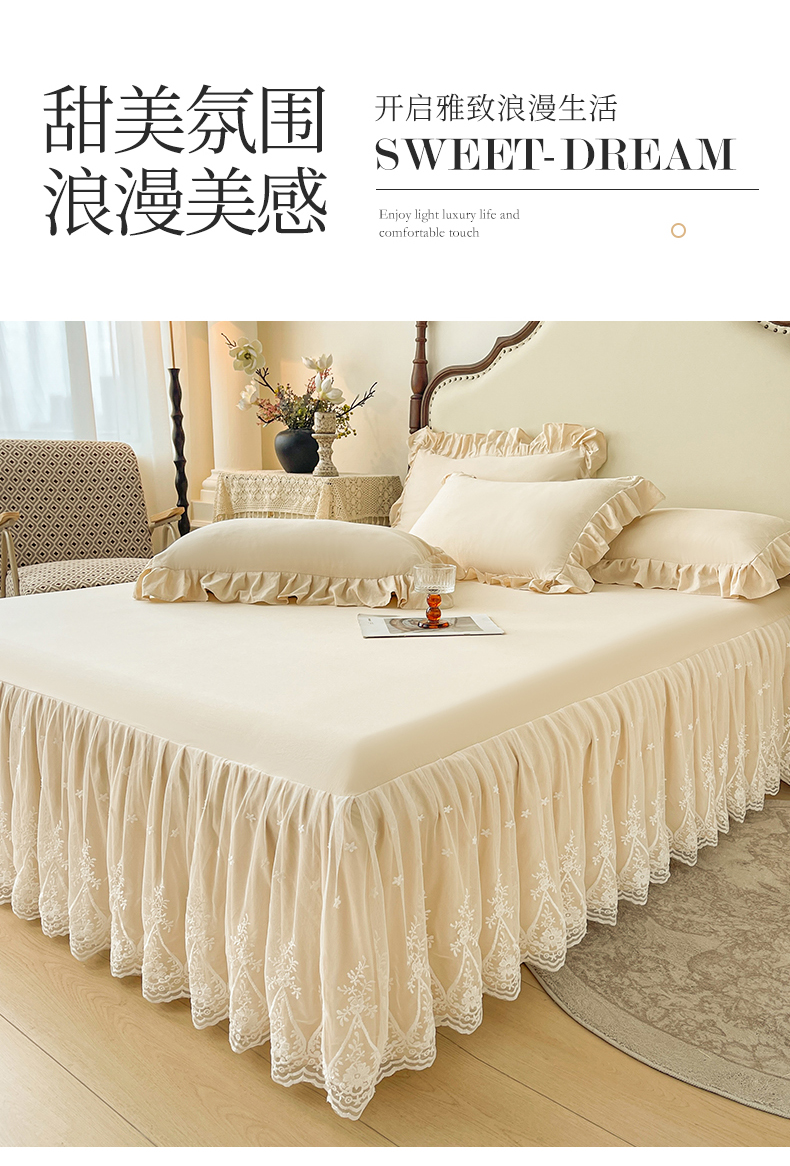 当前位置: 91家纺网 > 商品网购 > 床品套件 > 三件套 > 好儿喜家纺 2025新款A类水洗棉花边床裙蕾丝床罩三件套-梦之香 梦之香-香槟