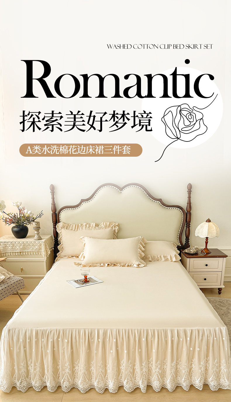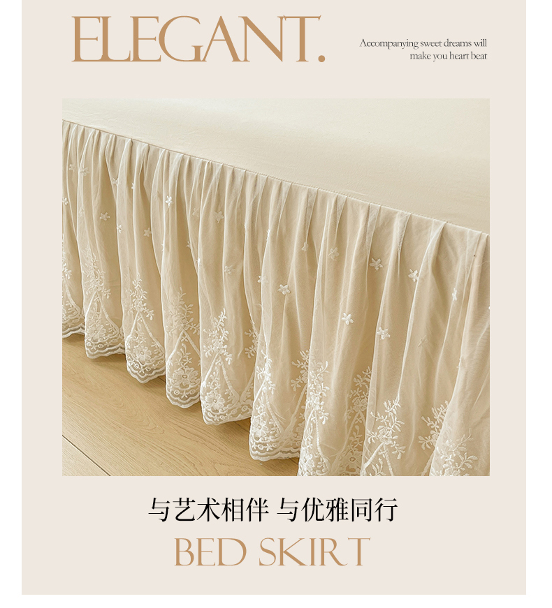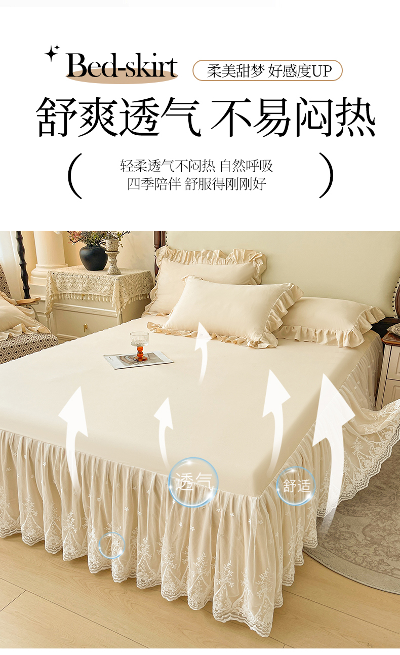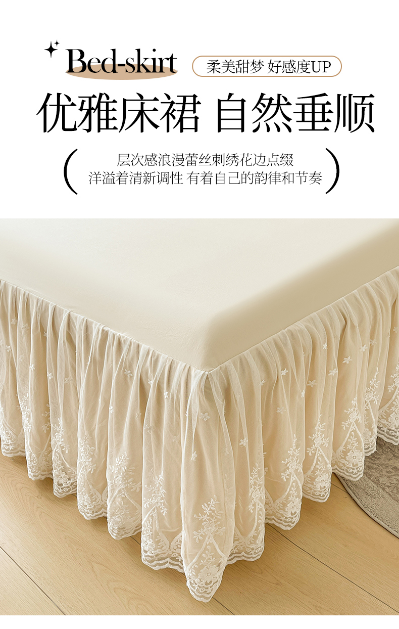 当前位置: 91家纺网 > 商品网购 > 床品套件 > 三件套 > 好儿喜家纺 2025新款A类水洗棉花边床裙蕾丝床罩三件套-梦之香 梦之香-香槟