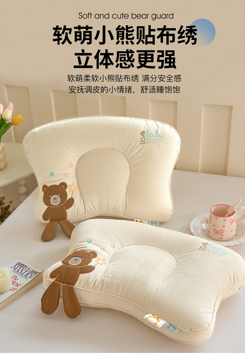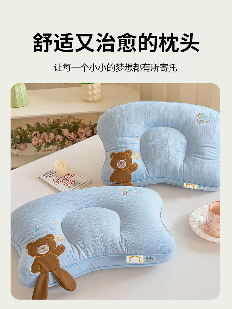 商品名称:鼎晟纺 2025新款小熊贴布绣儿童枕护颈枕头枕芯 儿童枕小熊蓝