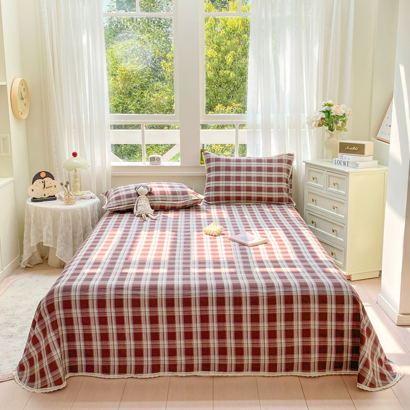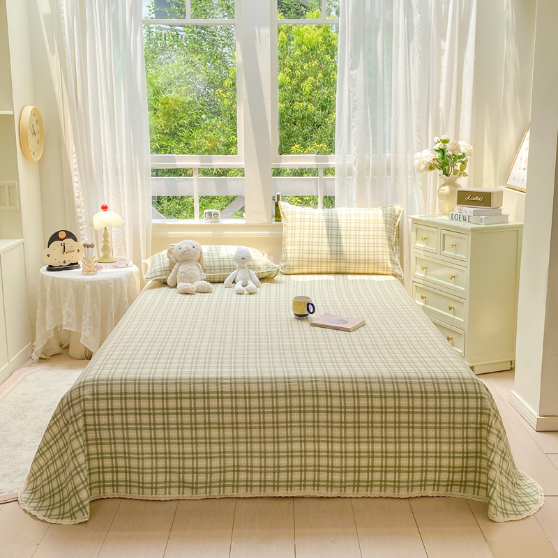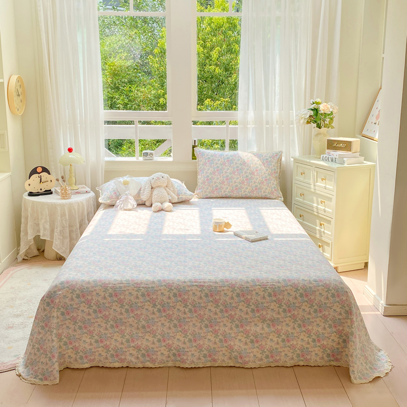 • 91家纺网 家纺一手货源 找家纺 欧尚 2025新款云感双层纱针织棉印花母婴级超柔裸睡级床单三件套 松野