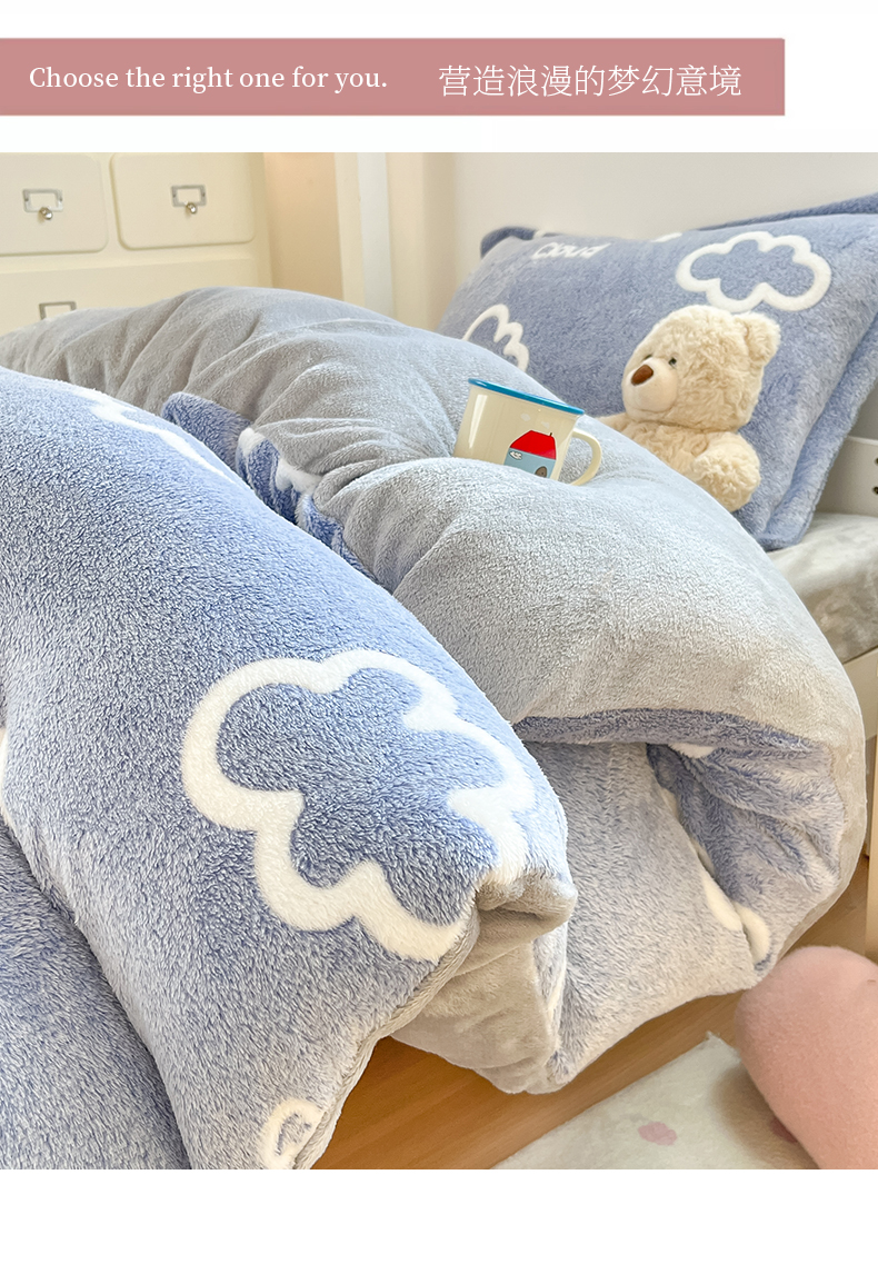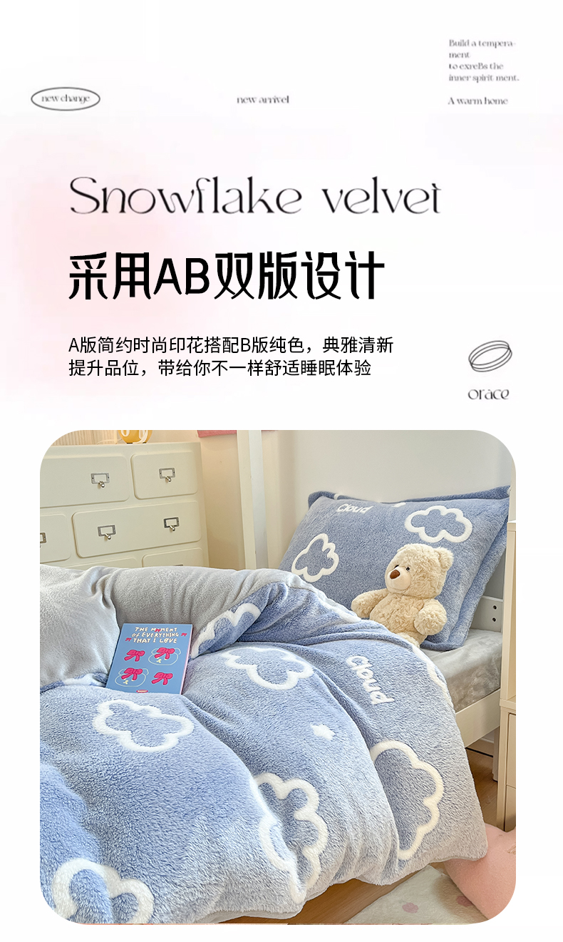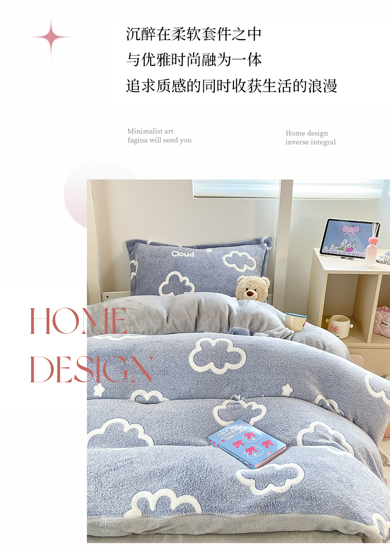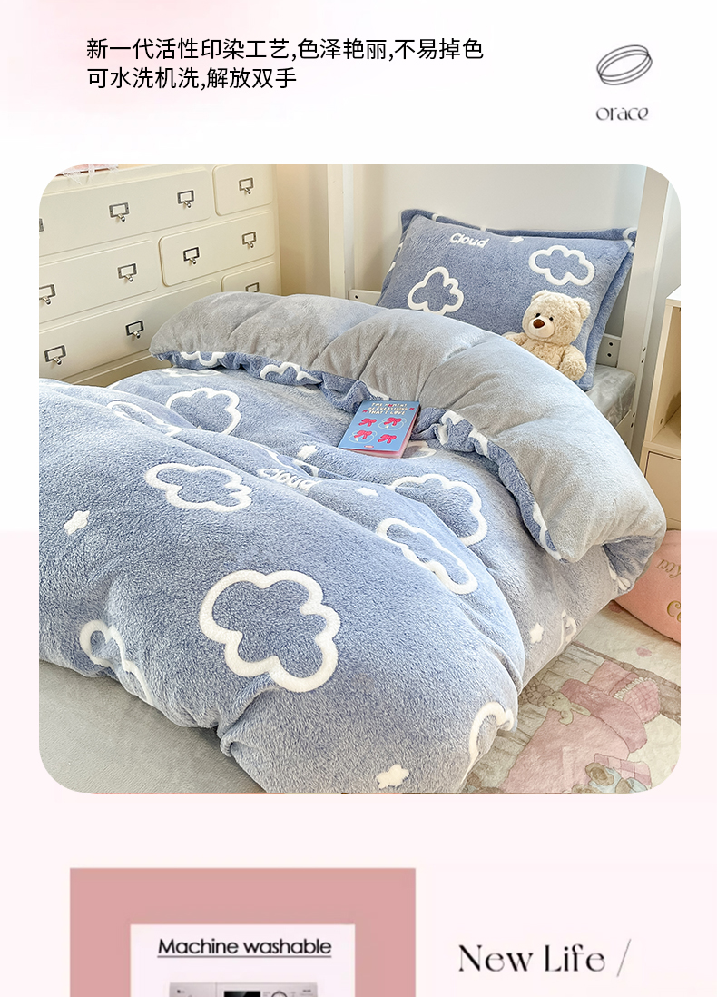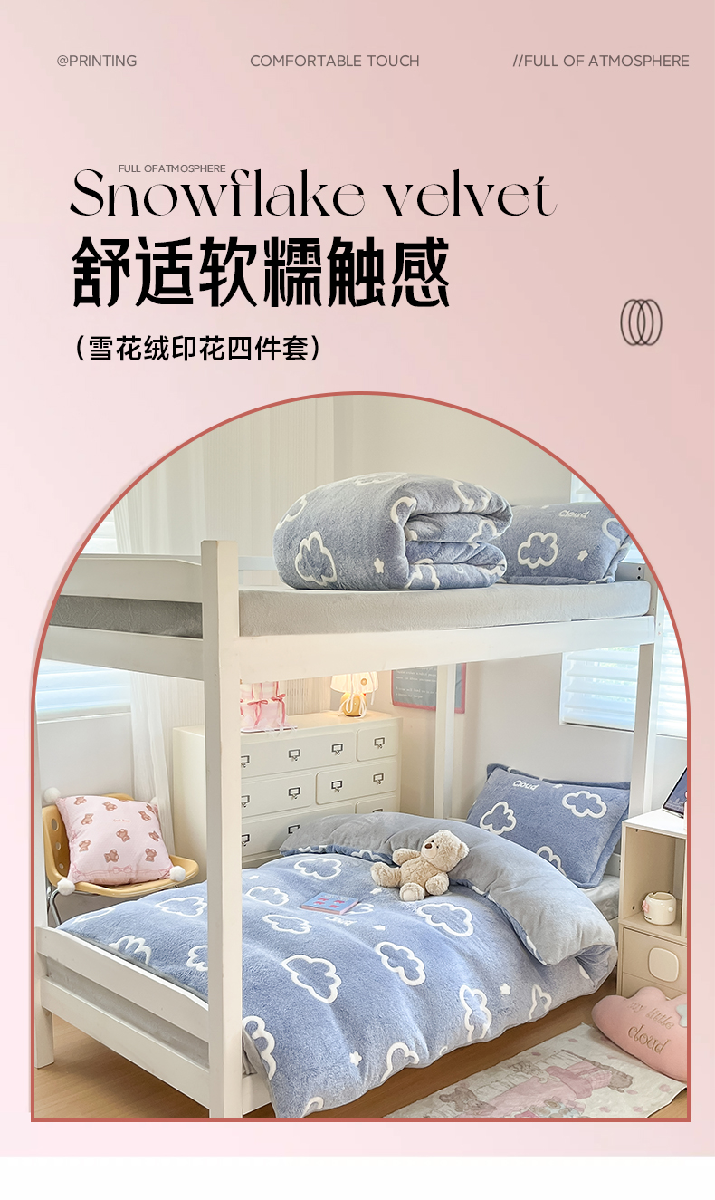 当前位置: 91家纺网 > 商品网购 > 床品套件 > 四件套 > 其它四件套 > 川悦生活 2025新款立体雪花绒印花四件套学生床系列一场景一 奶味云朵