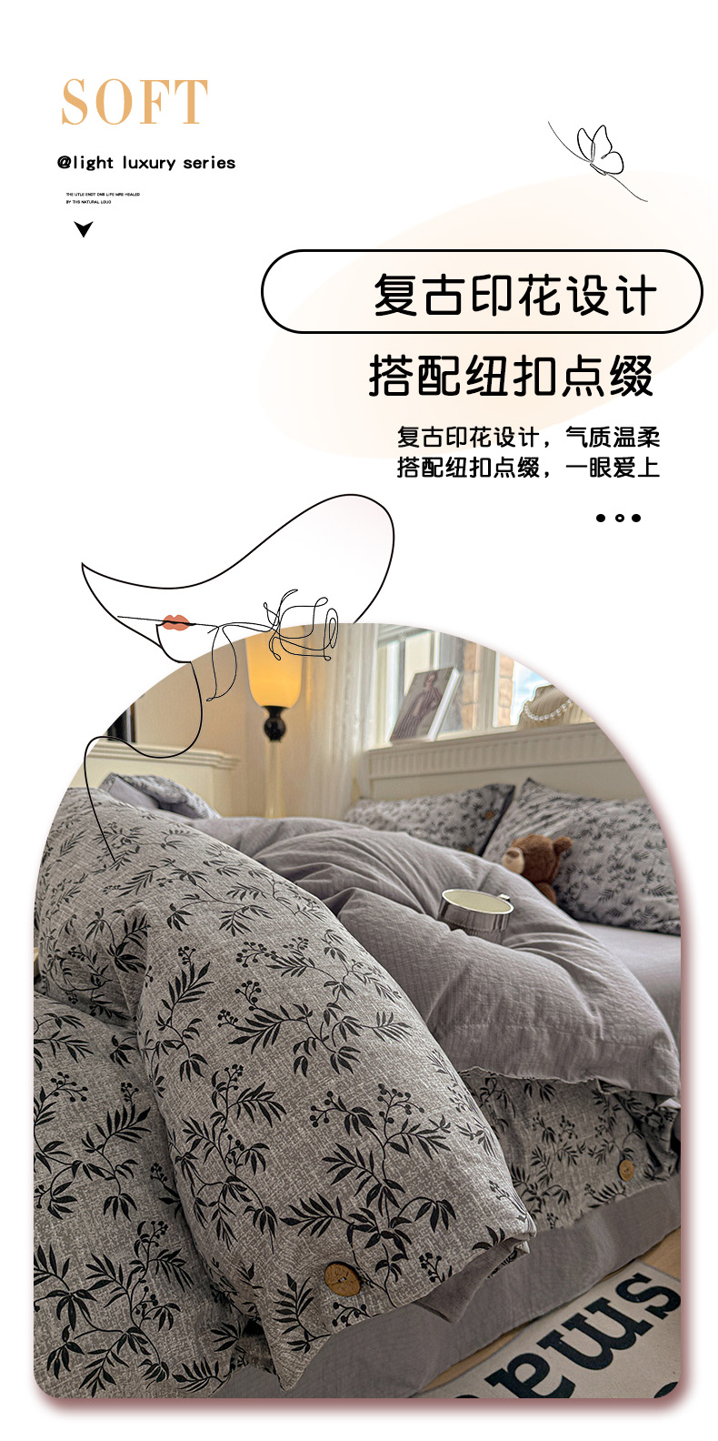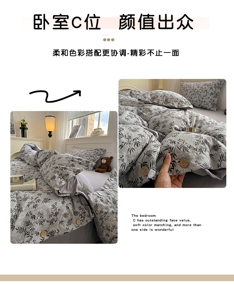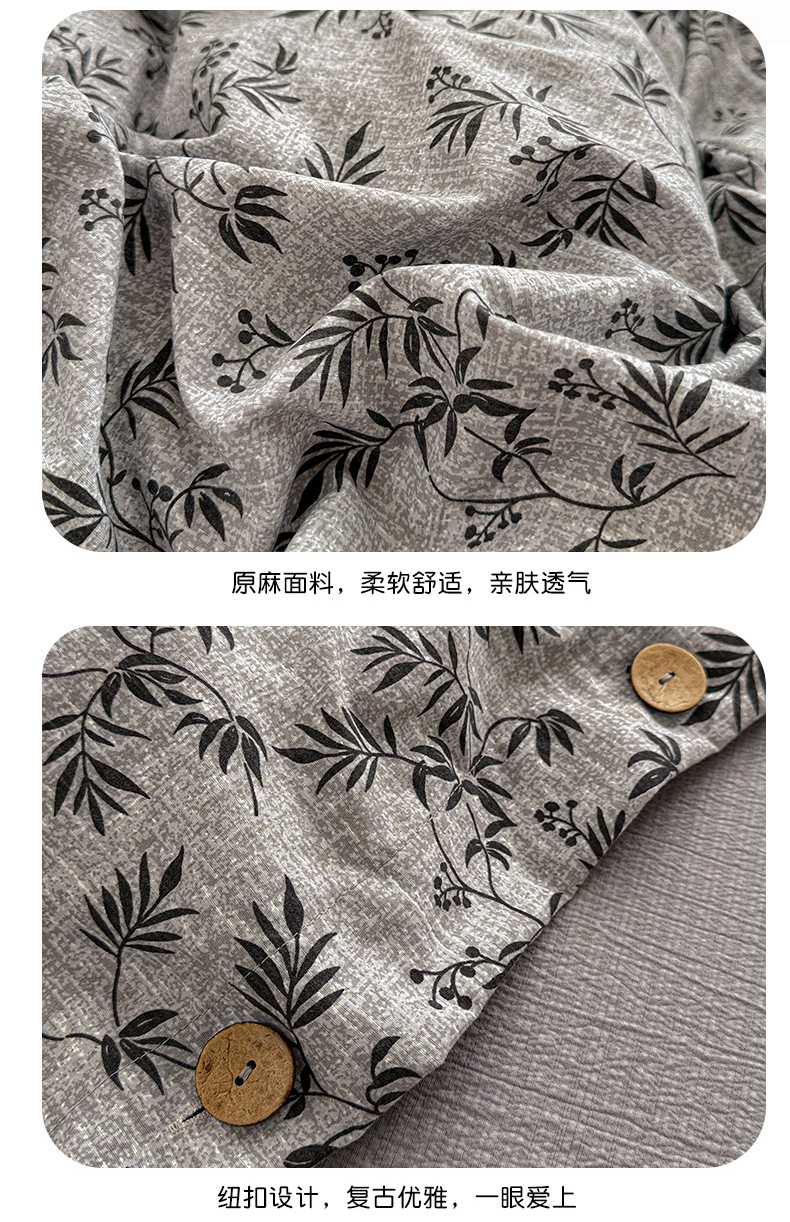 当前位置: 91家纺网 > 商品网购 > 床品套件 > 四件套 > 其它四件套 > 水墨江南 2025新款原麻复古印花纽扣款四件套 竹韵