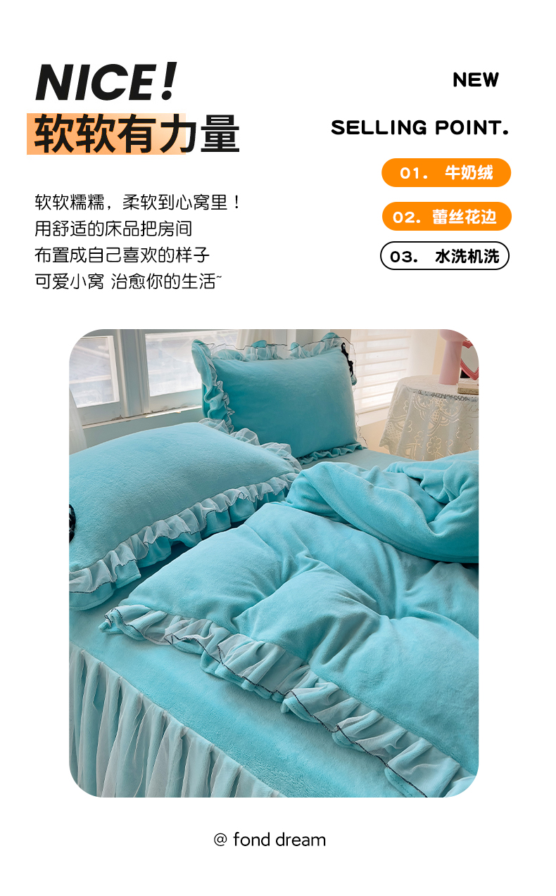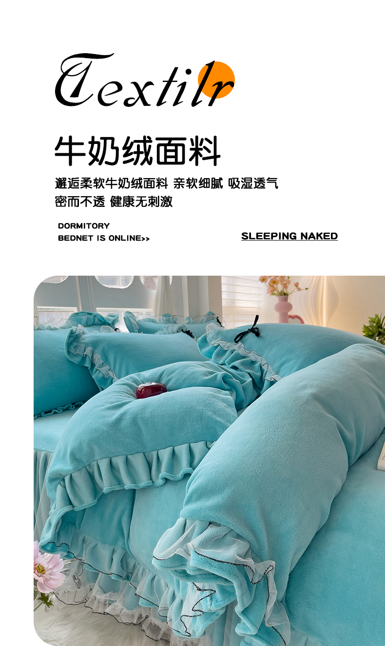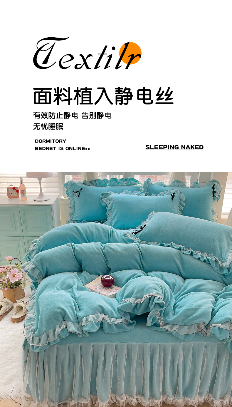 (总)言熙居 2024直播爆款新款牛奶绒法兰绒蕾丝花边黑纱四件套,蕾丝-小清新黄,蕾丝-小清新桔,蕾丝-小清新蓝,蕾丝-小清新绿,蕾丝-小清新抹茶绿,蕾丝-小清新玉,蕾丝-小清新紫