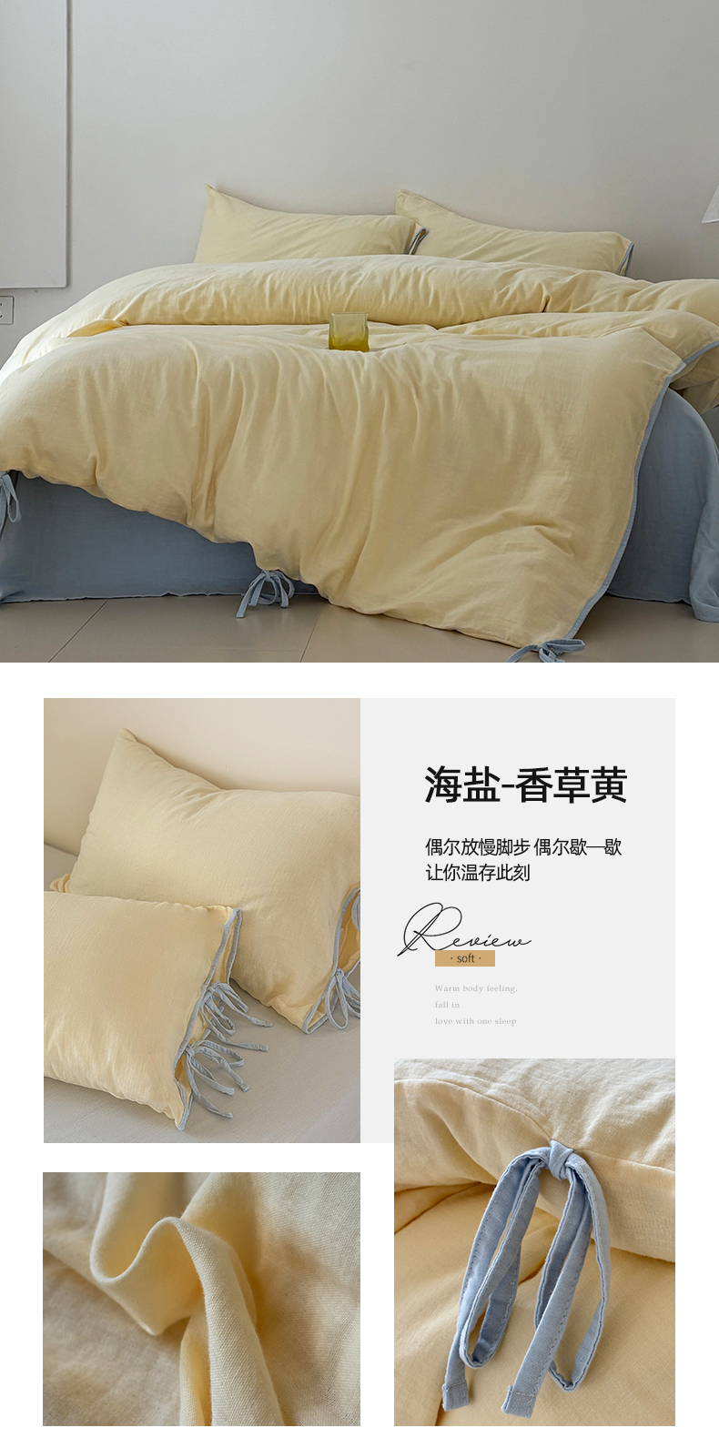 商品名称:FORTWO家纺原创设计(FOR TWO家纺) 2025新款40支双层纱撞色包边蝴蝶结款单被套-海盐 海盐-木槿紫
